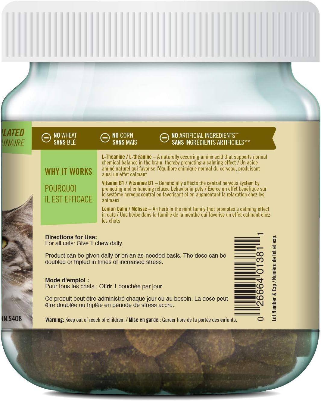 Many cats face stress from various situations such as car rides, vet visits, and thunderstorms. PET Naturals Calming for Cats is designed to help your feline friend manage these stressful moments. This supplement features a blend of thiamine, L-Tryptophan, Lemon balm, and L-theanine, all aimed at promoting calm behavior without causing drowsiness or altering your cat's personality. The chicken liver flavor makes it appealing even to picky eaters. It's important to note that this product is not a sedative, allowing for flexible dosing during times of heightened stress. You can administer it daily or as needed, with effects typically starting within 30 minutes.