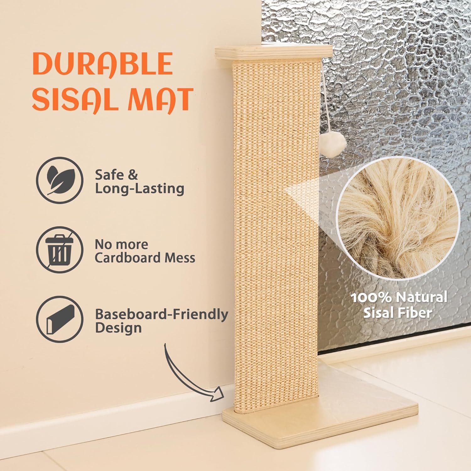 PETKARAY 28” Couch Corner Cat Scratcher, Wall Corner Scratching Post, Sisal Scratch Pad for Sofa, Wall Furniture Protector with Toy Ball