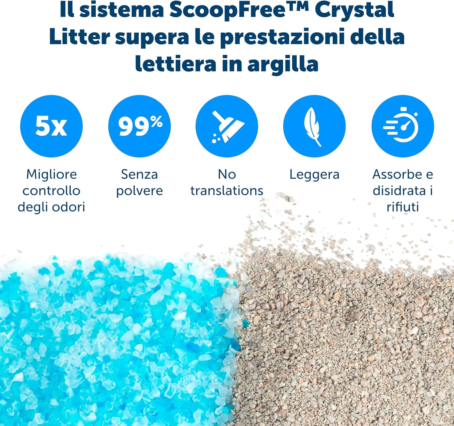 - Pre-filled with premium blue crystal litter