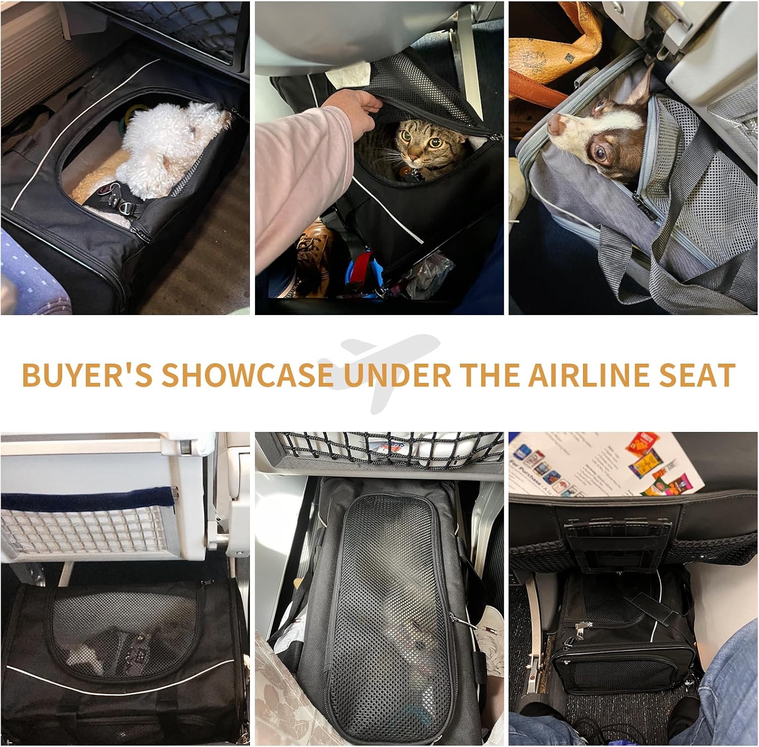 Petsfit Airline Approved Pet Carrier for Small Cats, 16.5×8.6×11 TSA Approved Carrier, with Removable Dual-Sided Padding (2-Way Placement) – Fits Under Most Airplane Seats, Escape Proof (Black)