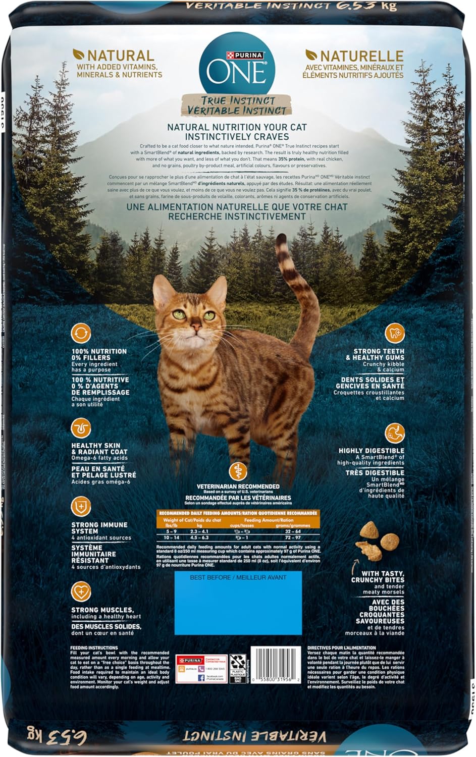 Purina ONE True Instinct Grain Free Dry Cat Food is designed to provide your cat with a diet that aligns with their natural instincts. This high-protein formula contains real chicken as the primary ingredient, ensuring that your pet receives the essential nutrients they need. The grain-free recipe is crafted with a SmartBlend® of natural ingredients, making it a wholesome choice for your feline friend.
