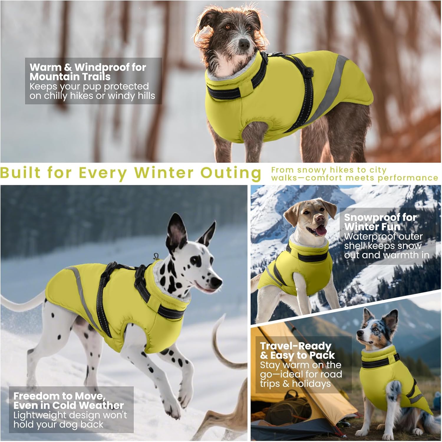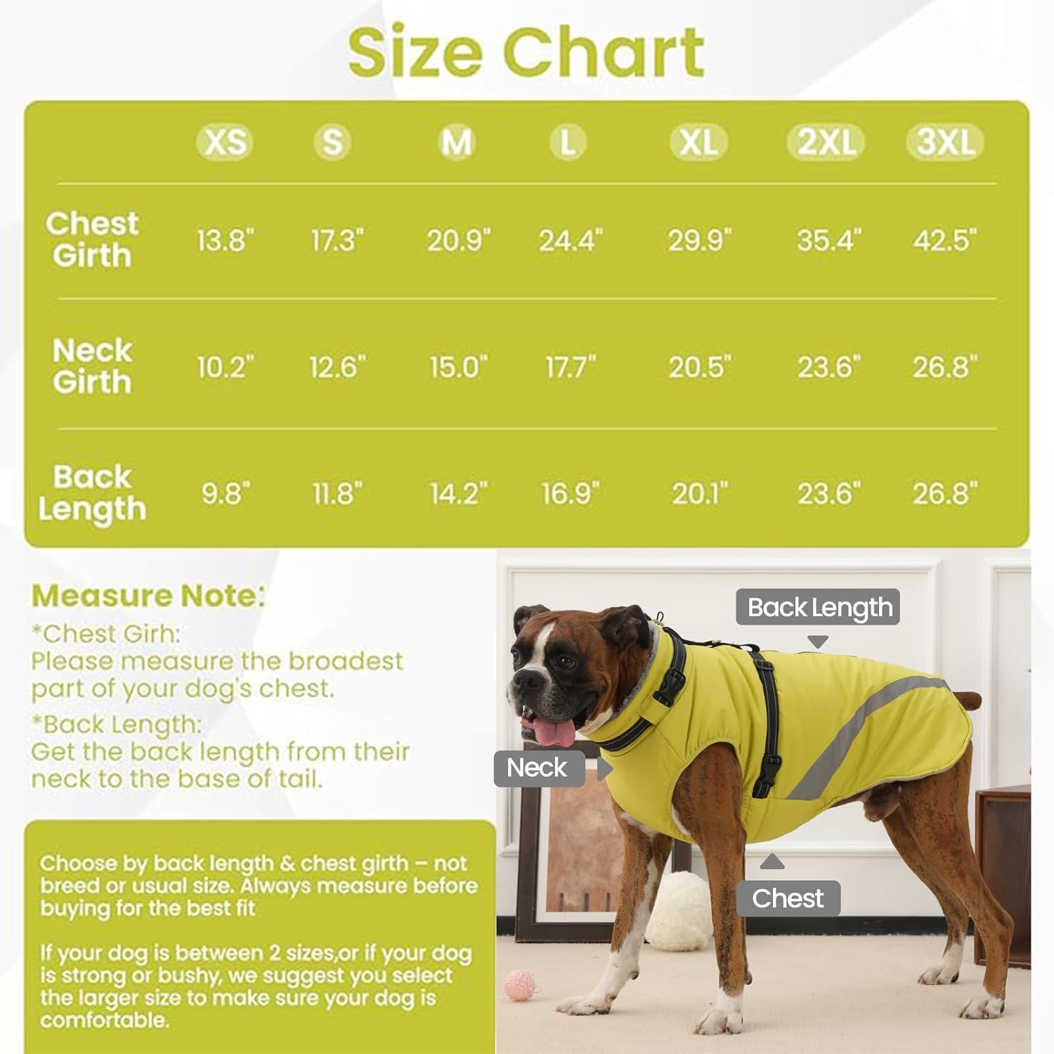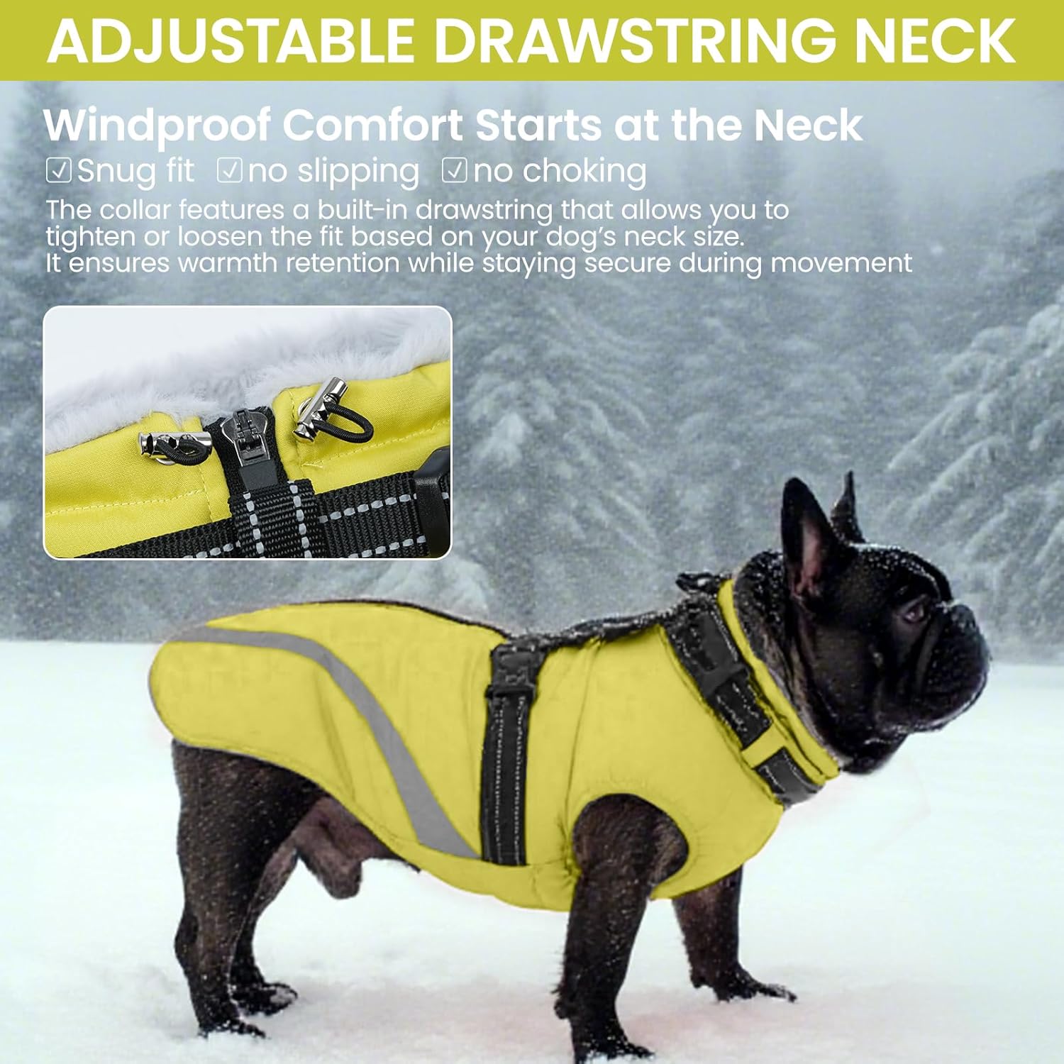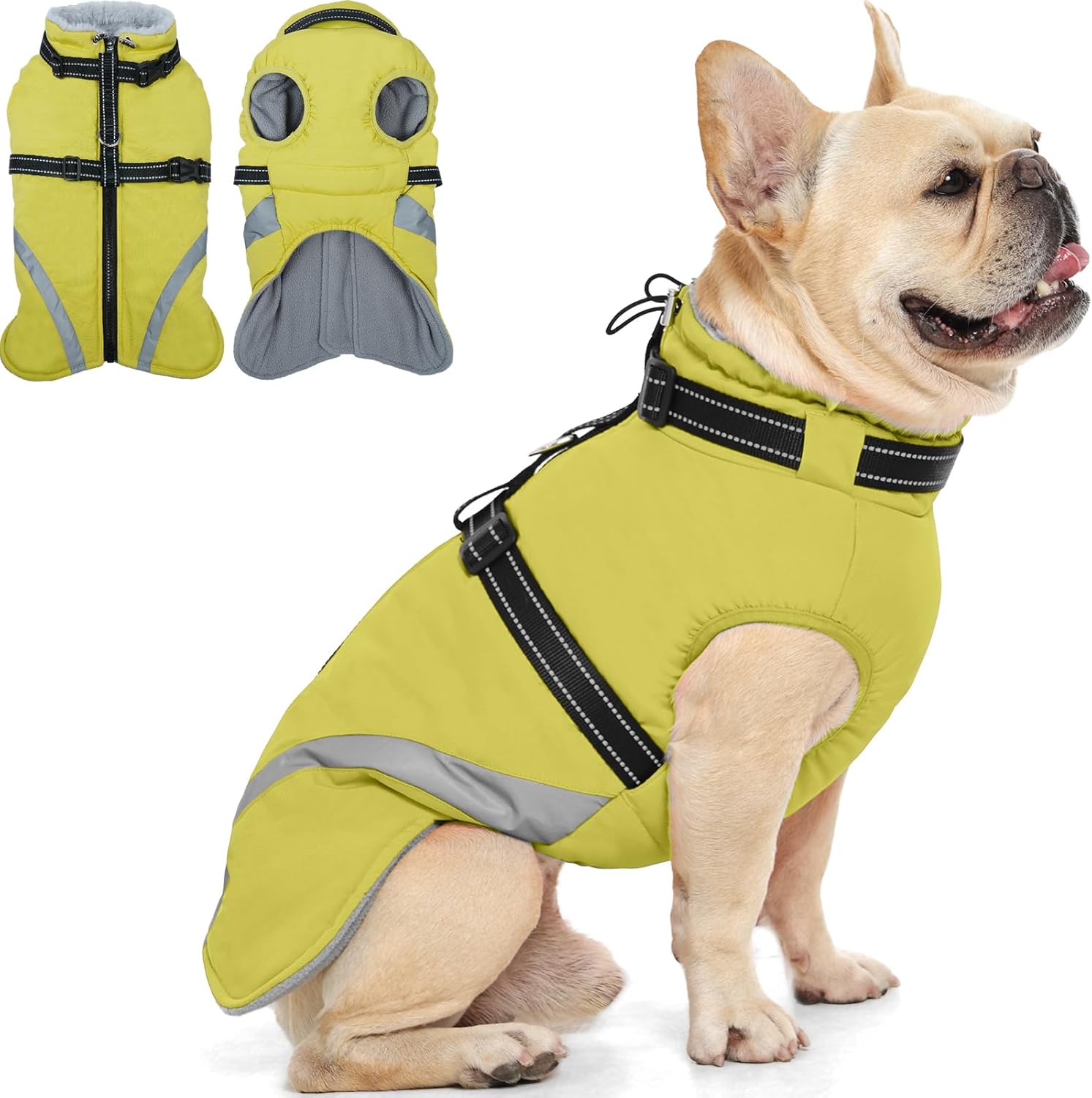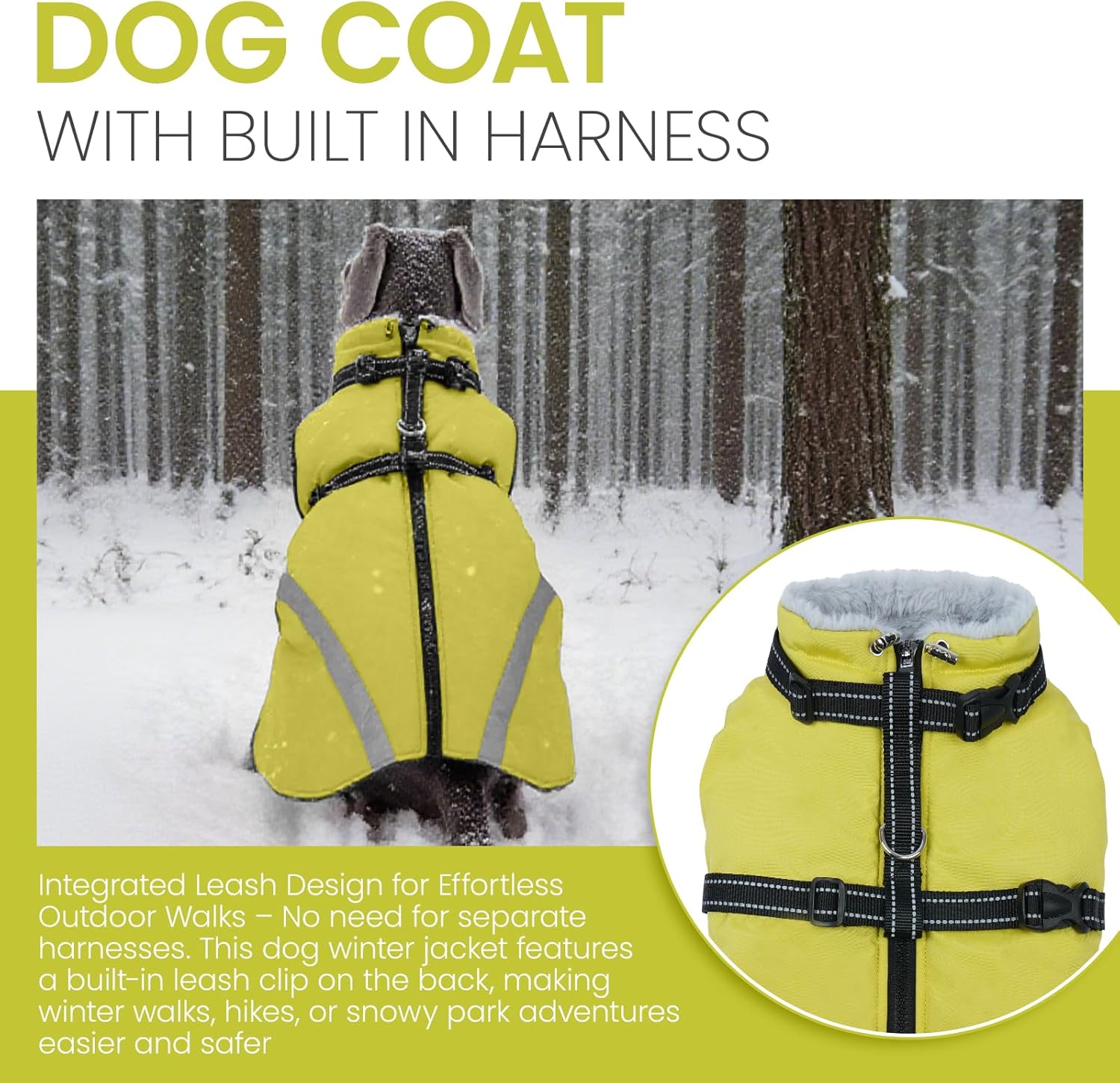 QBLEEV Dog Coat for Medium Dogs, Waterproof Dog Winter Coat with Built-in Harness and D-Ring, Zip Up Pet Cold Weather Coats with Fleece Lined, Warm Snowsuit Gear Vest for Pug Boston Terrier, Green, M