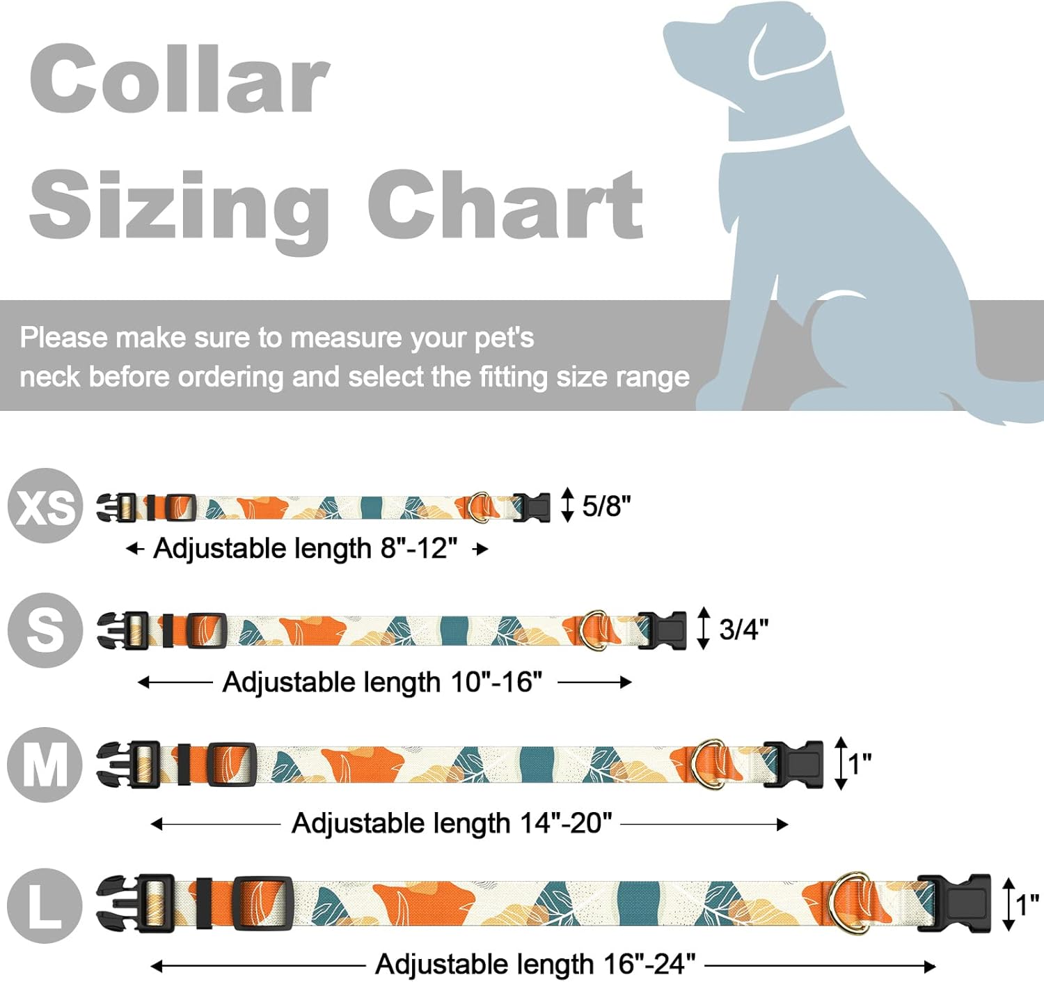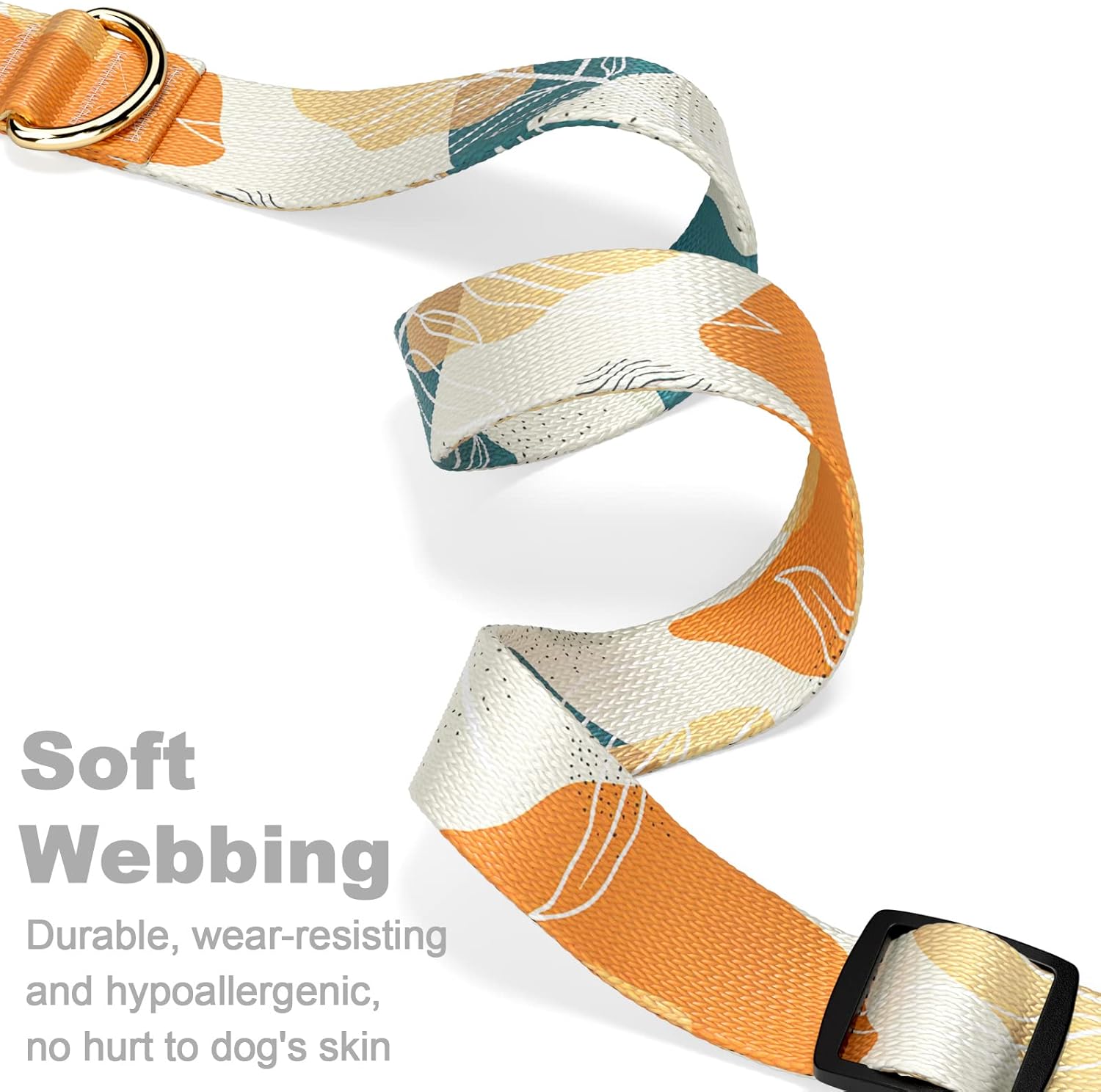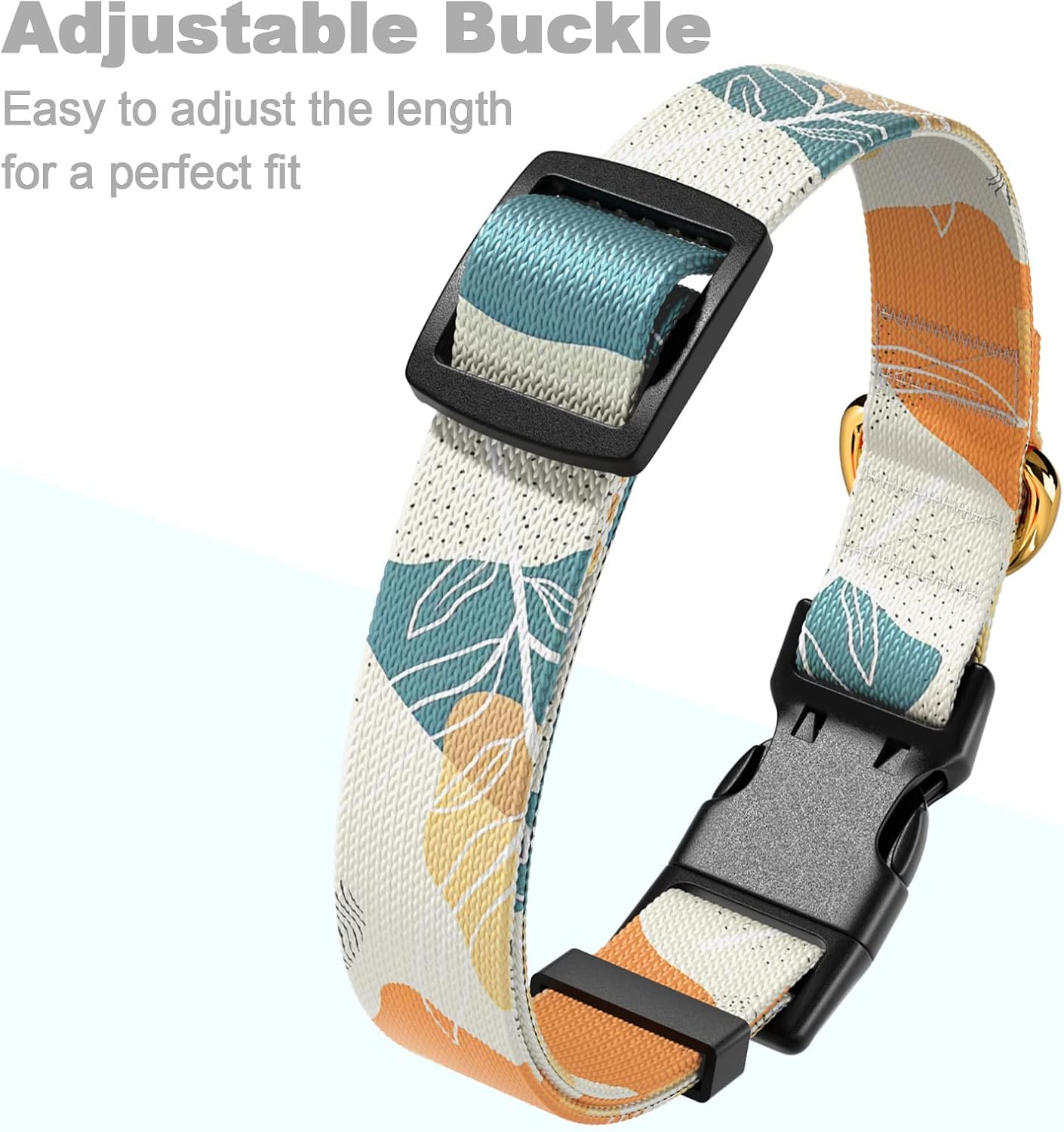 Rnivvi Dog Collar, Personalized Adjustable Dog Collar for Large Dogs, Cute Boho Puppy Collar for Boy and Girl Dogs, Soft Pet Collars with Quick Release Buckle for Walking Running, Abstract Leaves