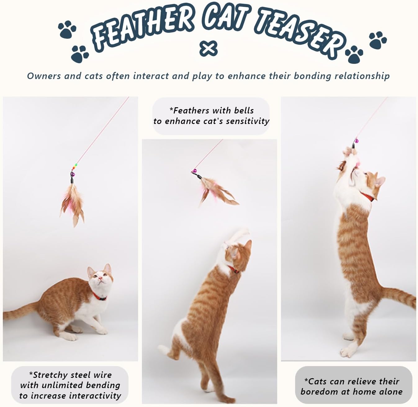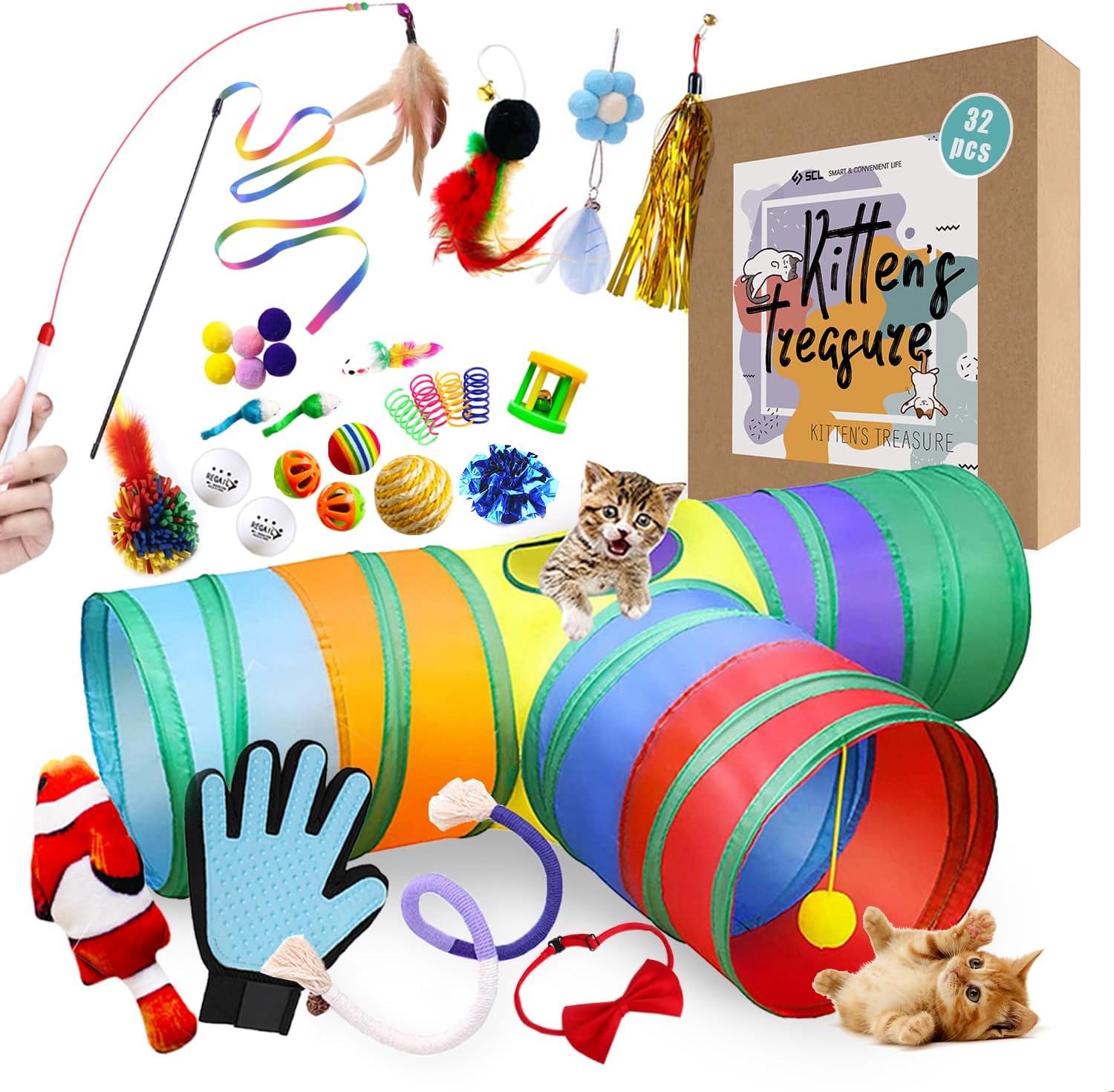 SCL (32 pcs) Cat Toys Kitten Toys Assorted, Cat Tunnel Teaser Wand Catnip Fish Column Bell Fur Mice Fuzzy Balls Spring Toy for Cat and Puppy Kitty