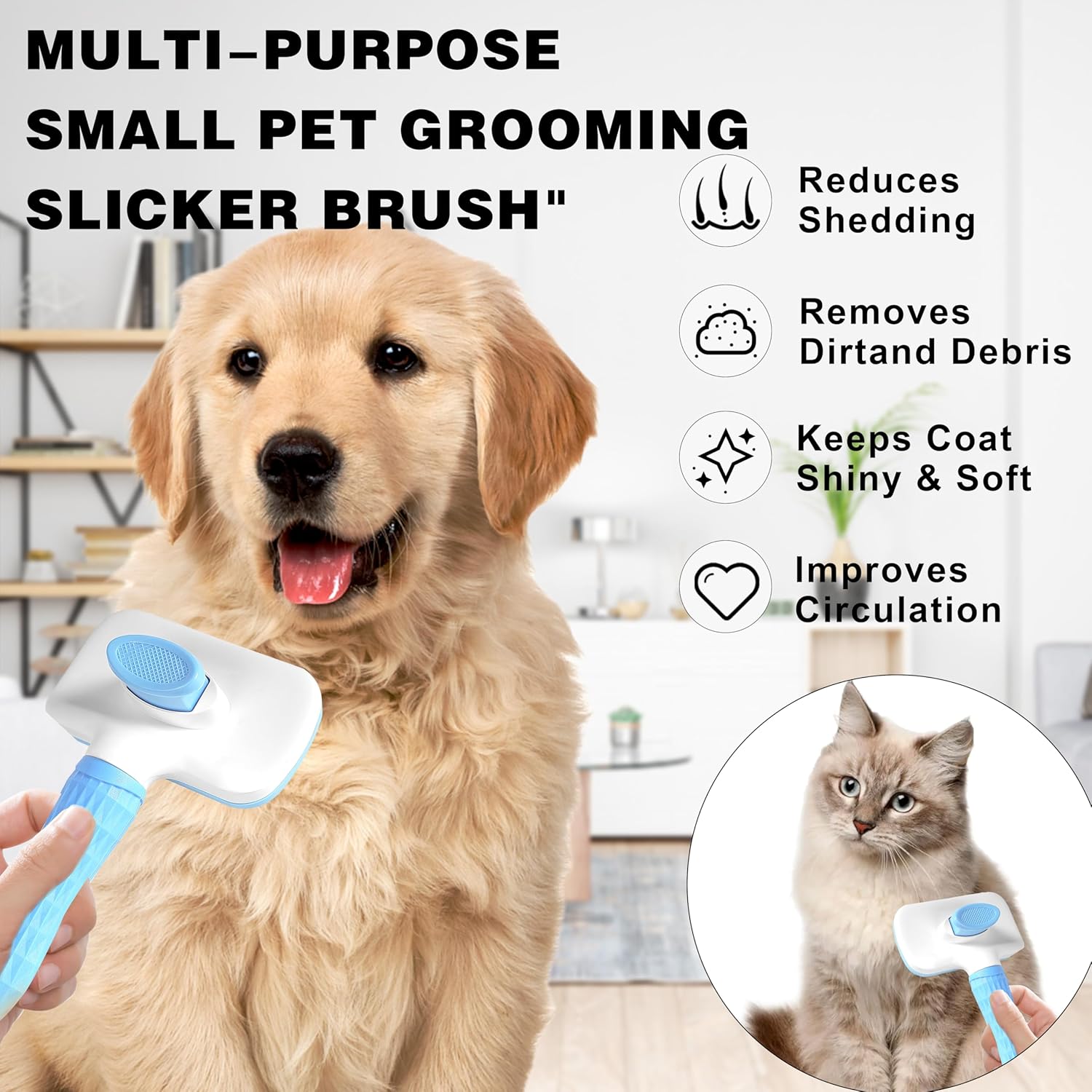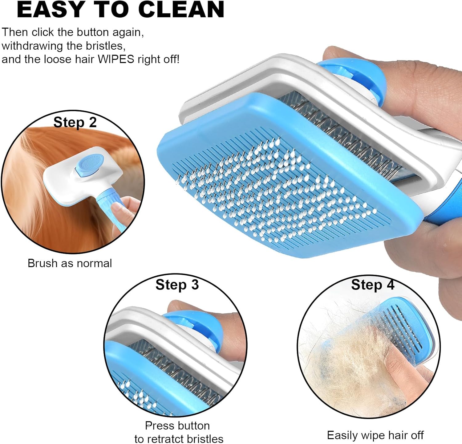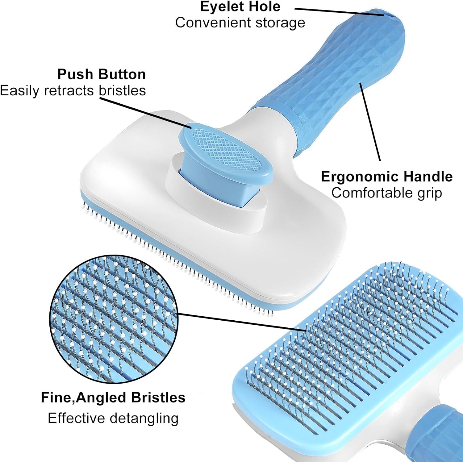 Self Cleaning Slicker Brush, Dog Cat Pet Grooming Shedding, Deshedding Brush and Dematting Tool, Easy to Remove Loose Undercoat, Knots, Mats, Tangles,and Flying Hair (Sky Blue)