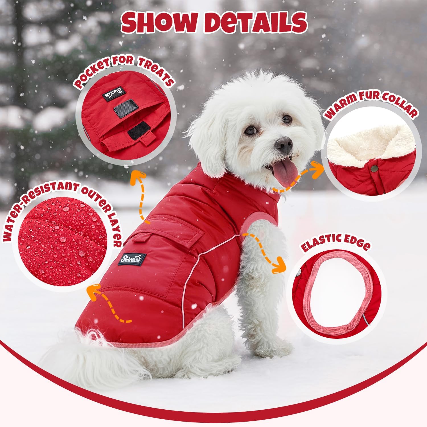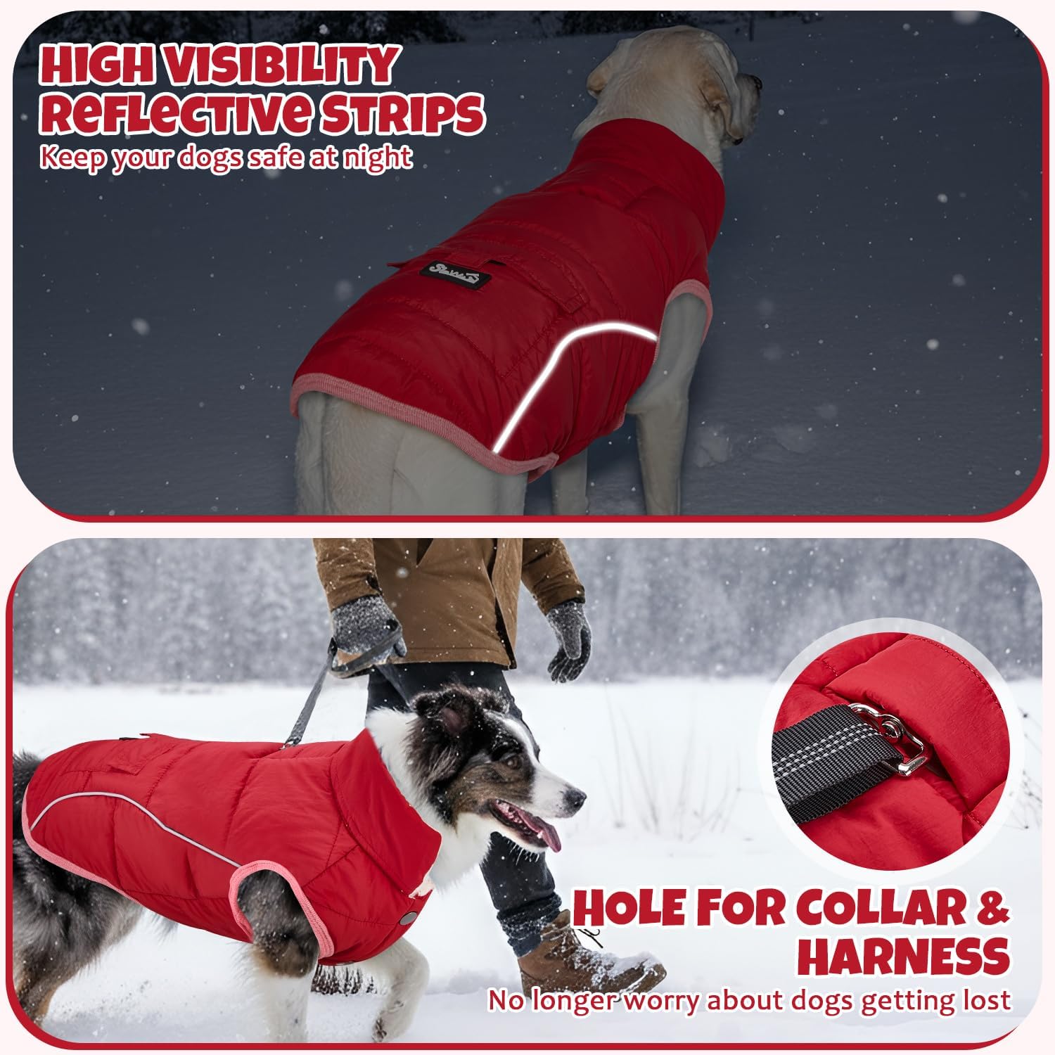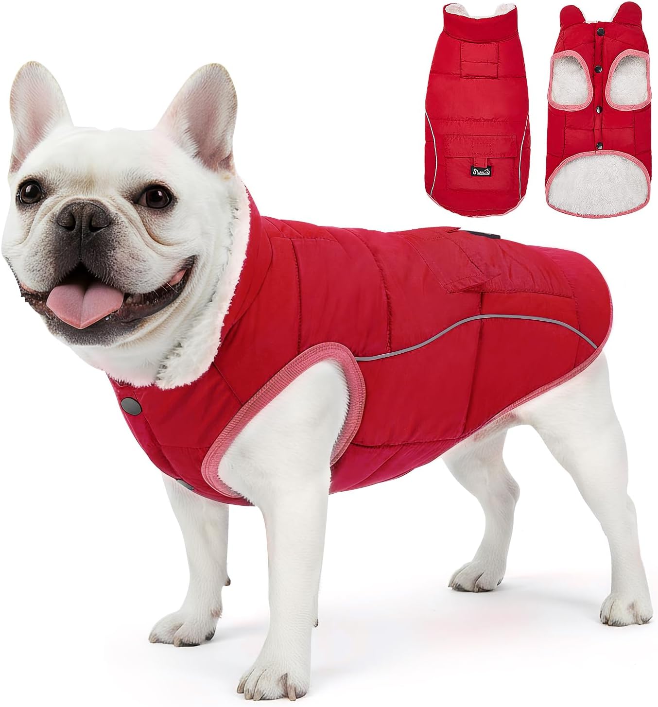 SlowTon Dog Winter Coat – Warm Fleece Lined Dog Snow Jacket with Reflective Stripes & Pockets, Water-Resistant Cold Weather Vest for Small Medium Dogs (Red, XS)