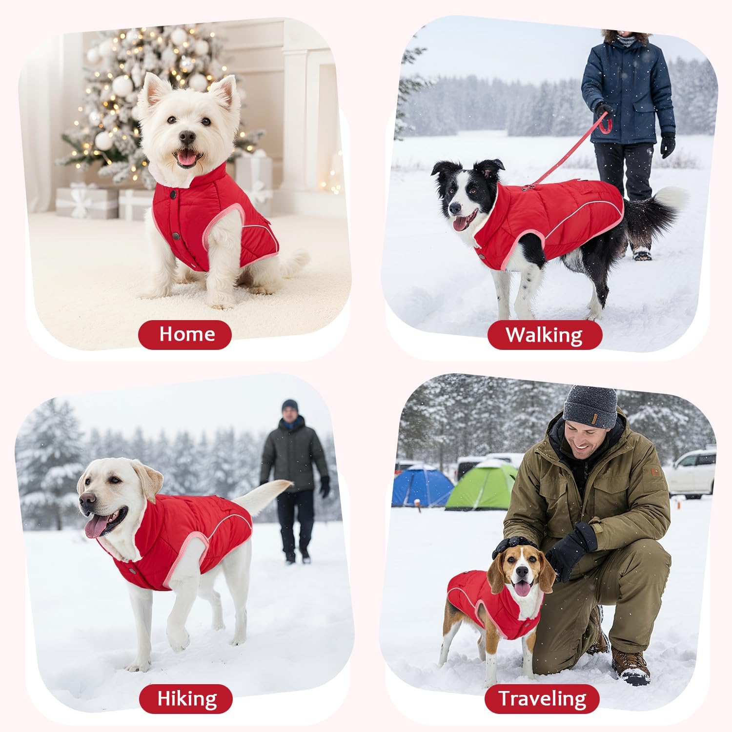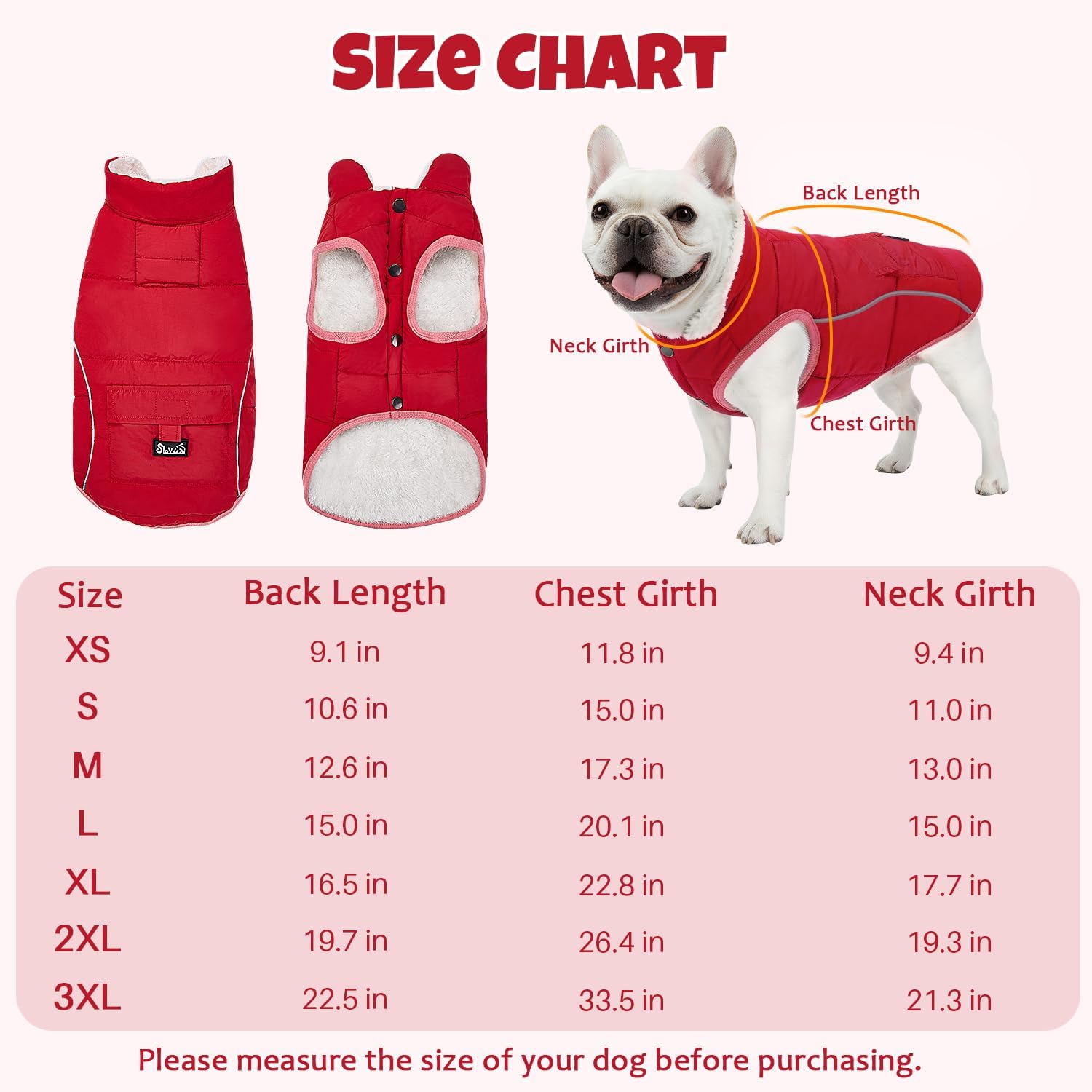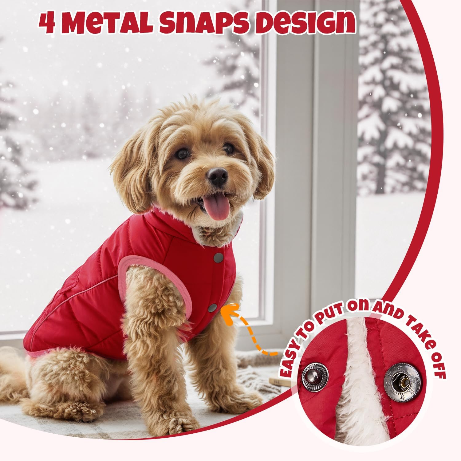 SlowTon Dog Winter Coat – Warm Fleece Lined Dog Snow Jacket with Reflective Stripes & Pockets, Water-Resistant Cold Weather Vest for Small Medium Dogs (Red, XS)