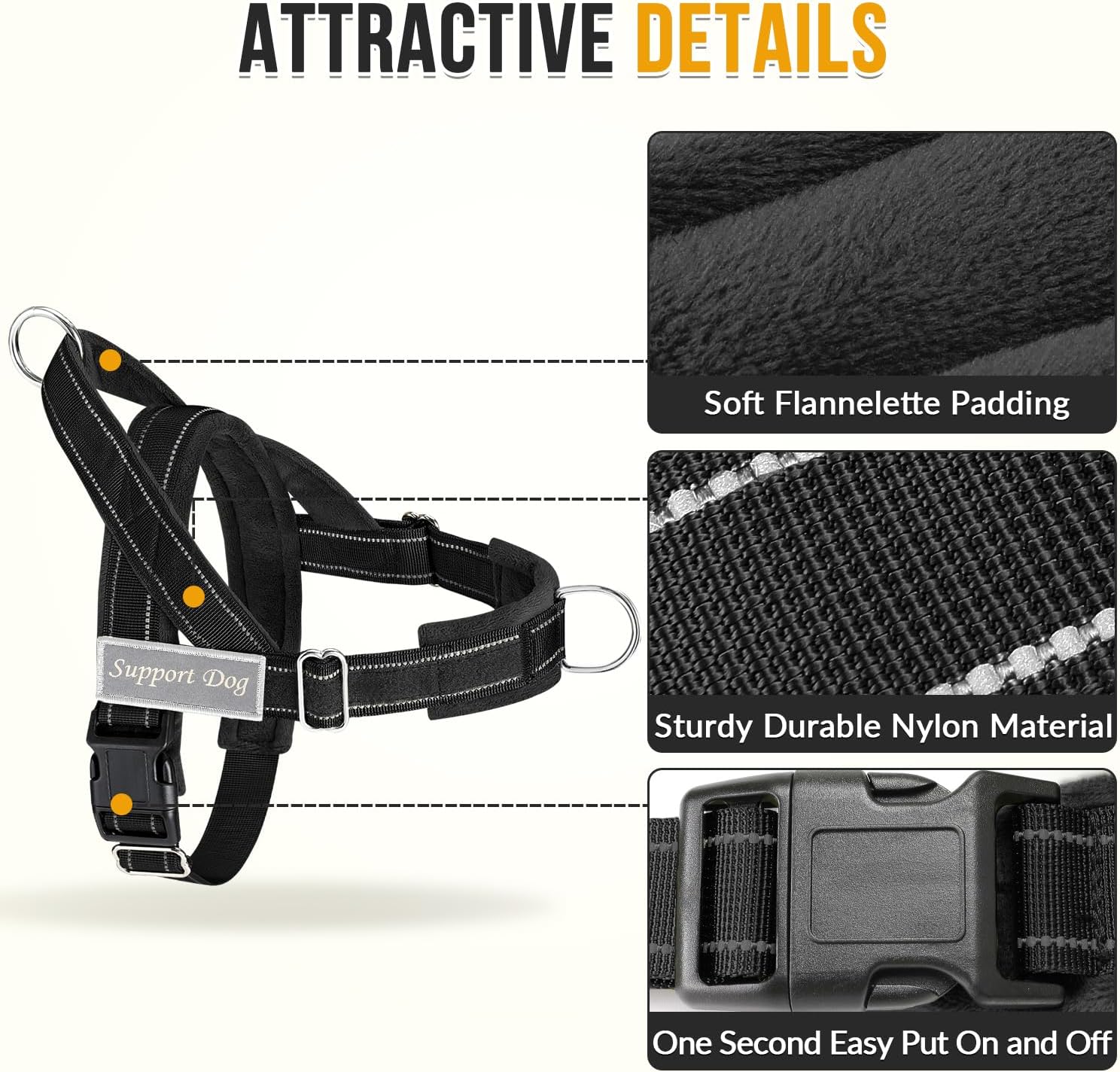 - Soft padded harness for comfort