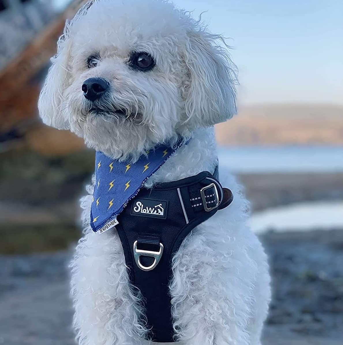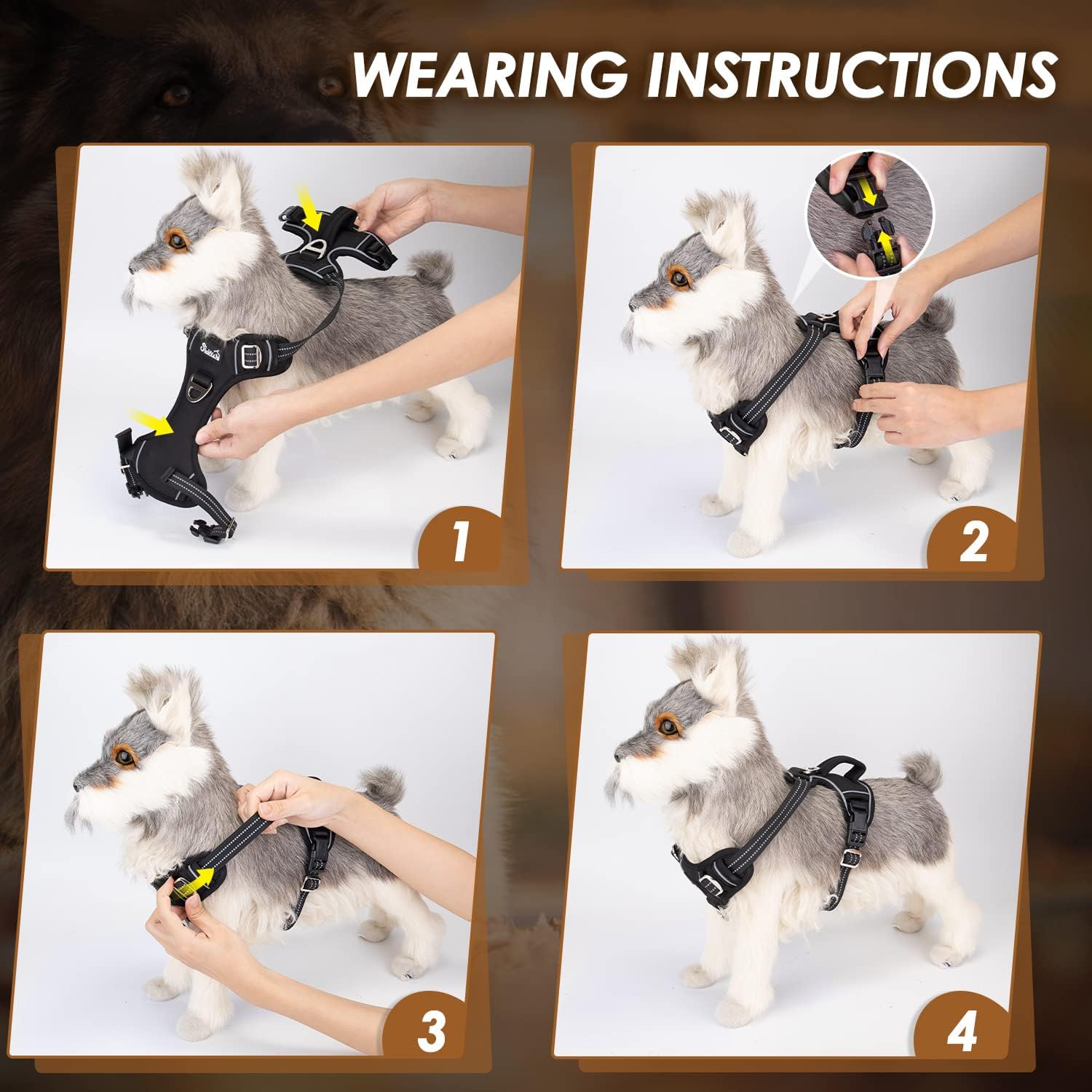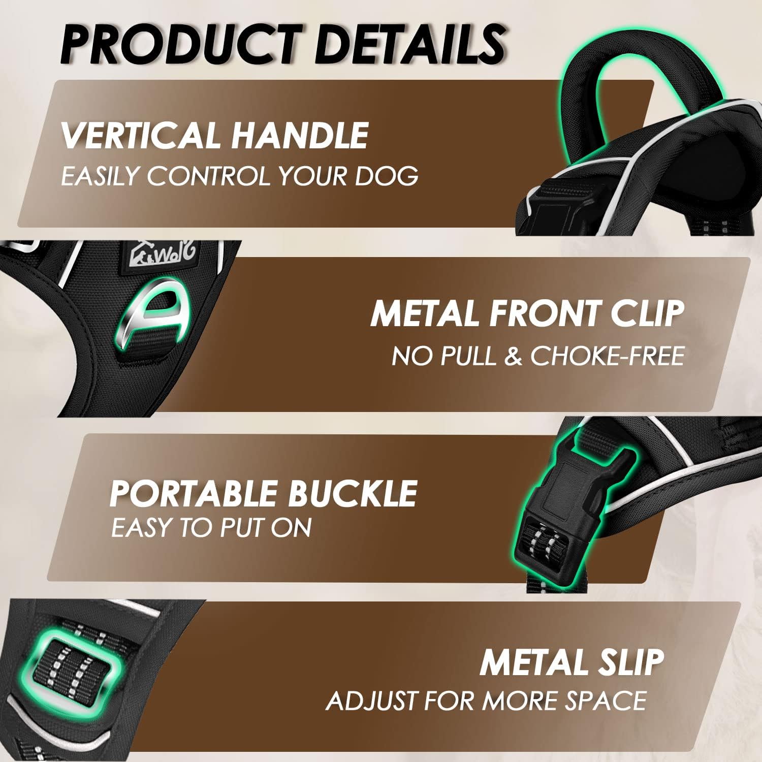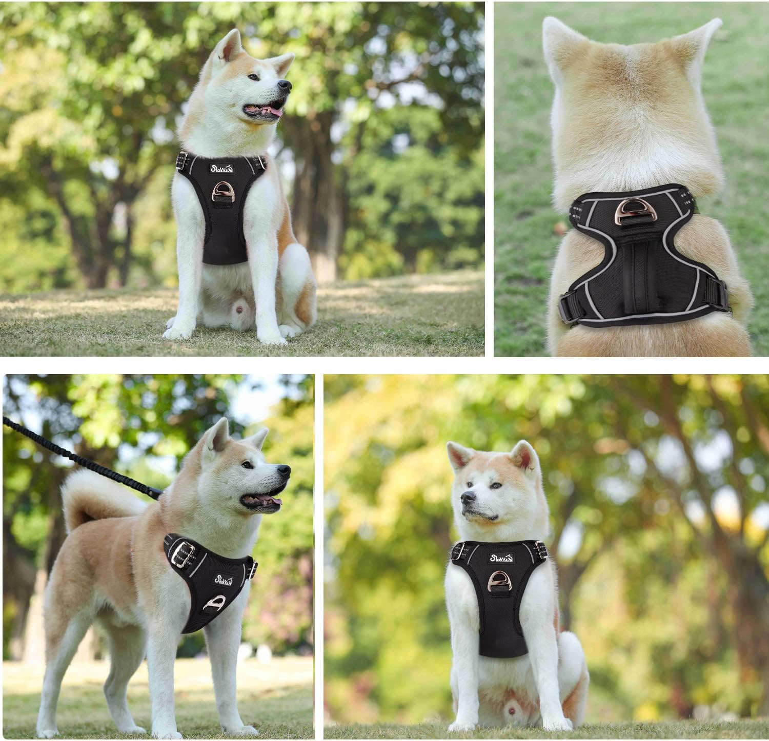 SlowTon No Pull Dog Harness, Heavy Duty No Choke Pet Harness with 2 Leash Clips and Easy Control Vertical Handle, Adjustable Soft Padded Dog Vest for Small, Medium and Large Dogs(Black,L)