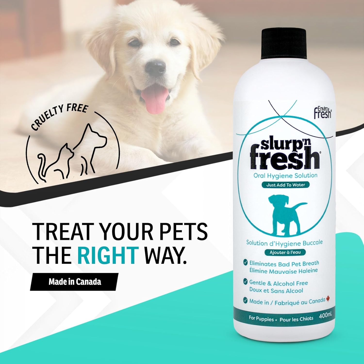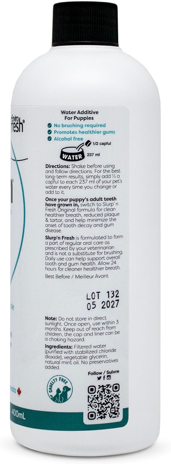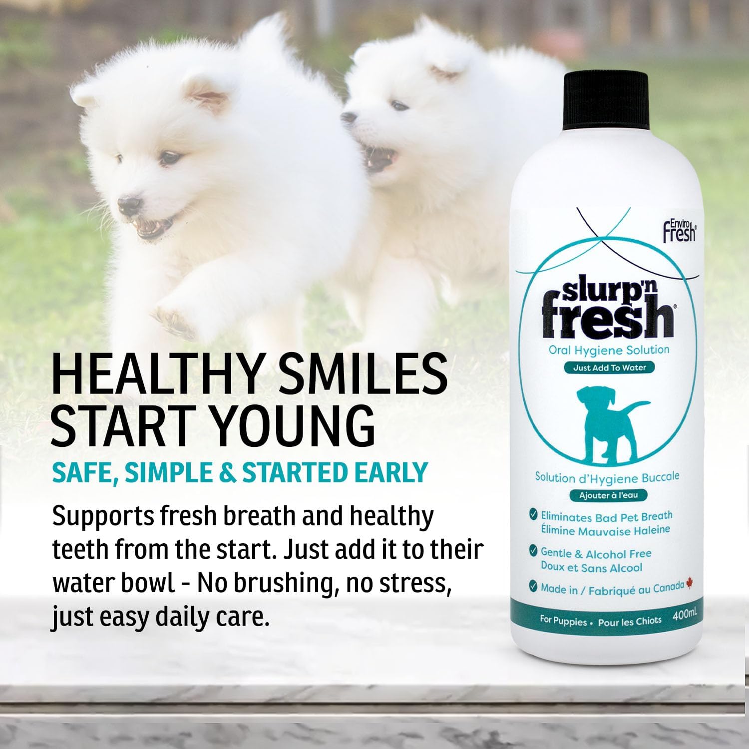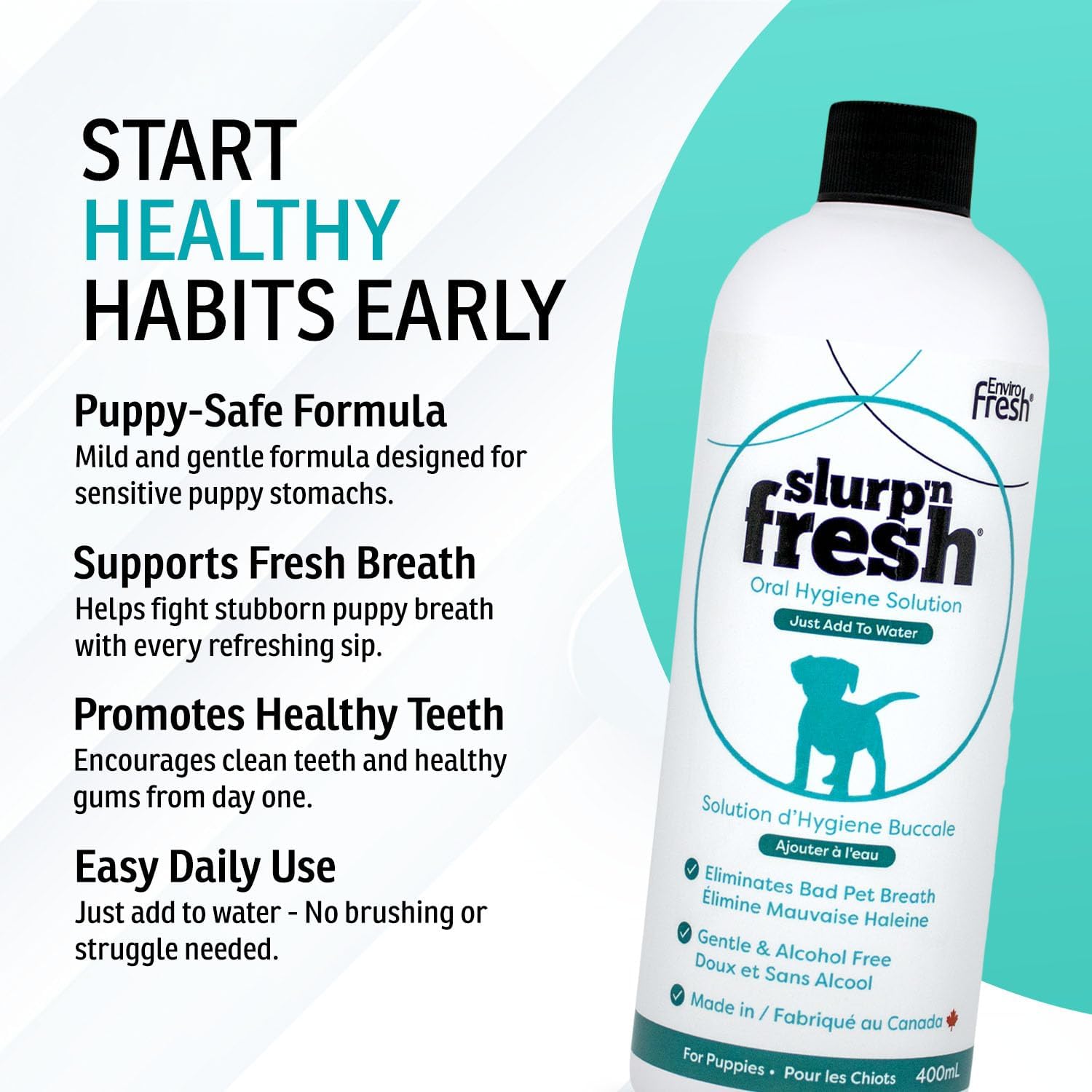 Slurp N’ Fresh Puppy Mouthwash by EnviroFresh, 400 mL, Bad Breath Solution for Puppies, Gentle Water Additive for Oral Hygiene, Plaque & Tartar Control, Fresh Breath Dental Care, Safe for Young Dogs #856