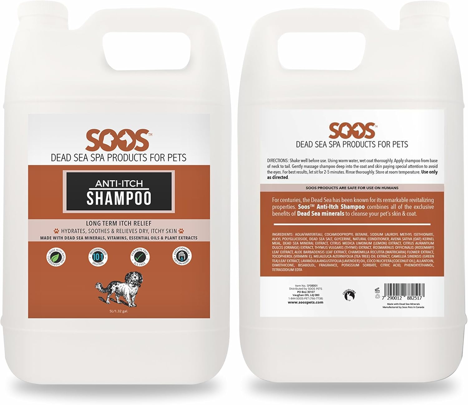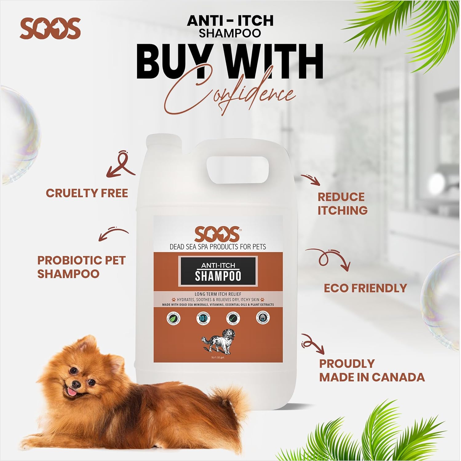 SOOS Pets Dog Shampoo for Cats and Pets Natural Dead Sea Anti-Itch Fast Absorbing Clean Fur with Vitamins Minerals Essential Oils Natural Ingredients for Dogs and Cats – 1x Pet Shampoo (4L)