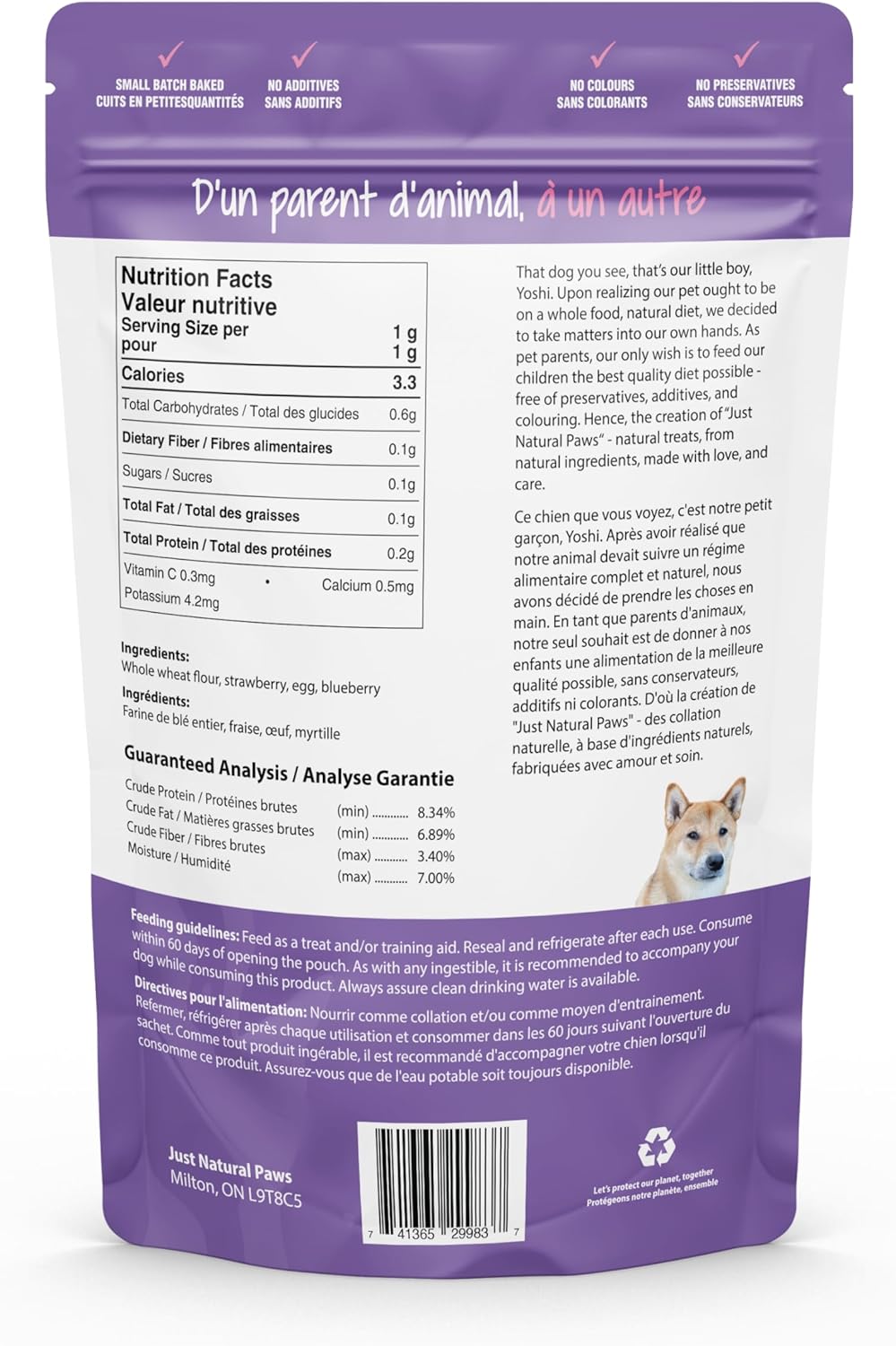 Strawberry & Blueberry Dog Treats – Healthy Puppy Training Treats Made in Canada – Low-Calorie, Vegetarian, Human-Grade – for Small, Medium & Large Dogs