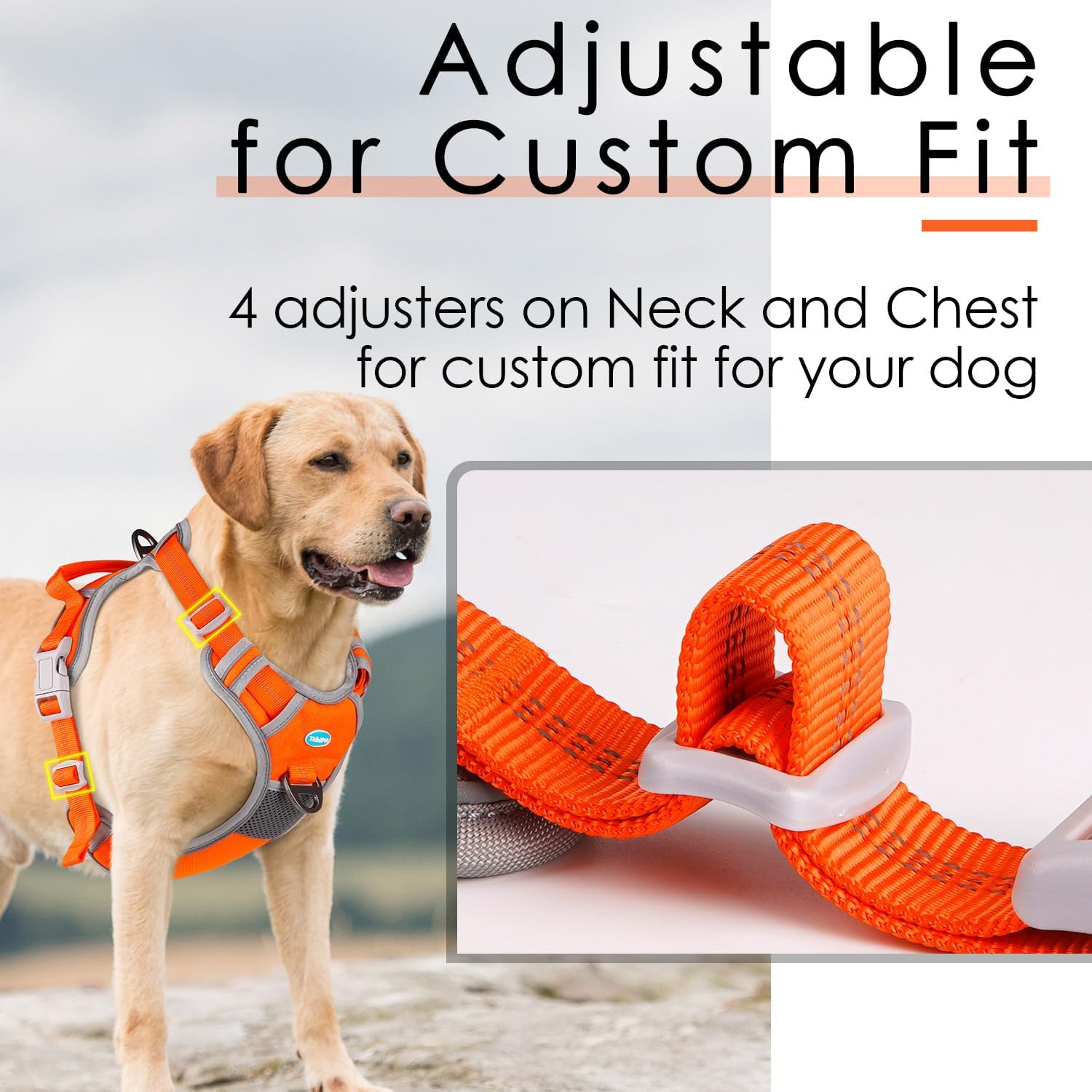 ThinkPet No Pull Harness Breathable Sport Harness with Handle-Dog Harnesses Reflective Adjustable for Medium Large Dogs,Back/Front Clip for Easy Control M Neon Orange