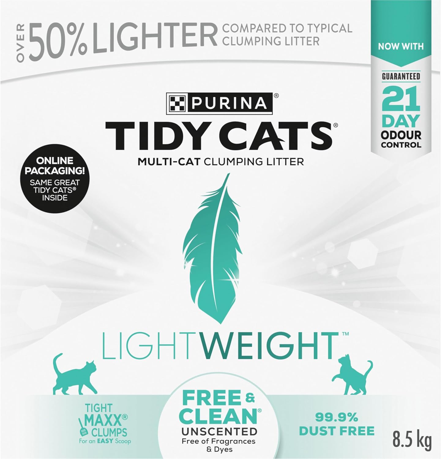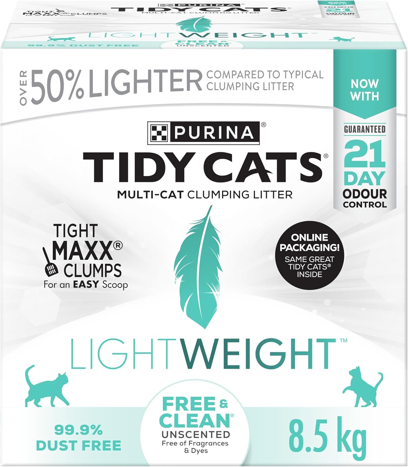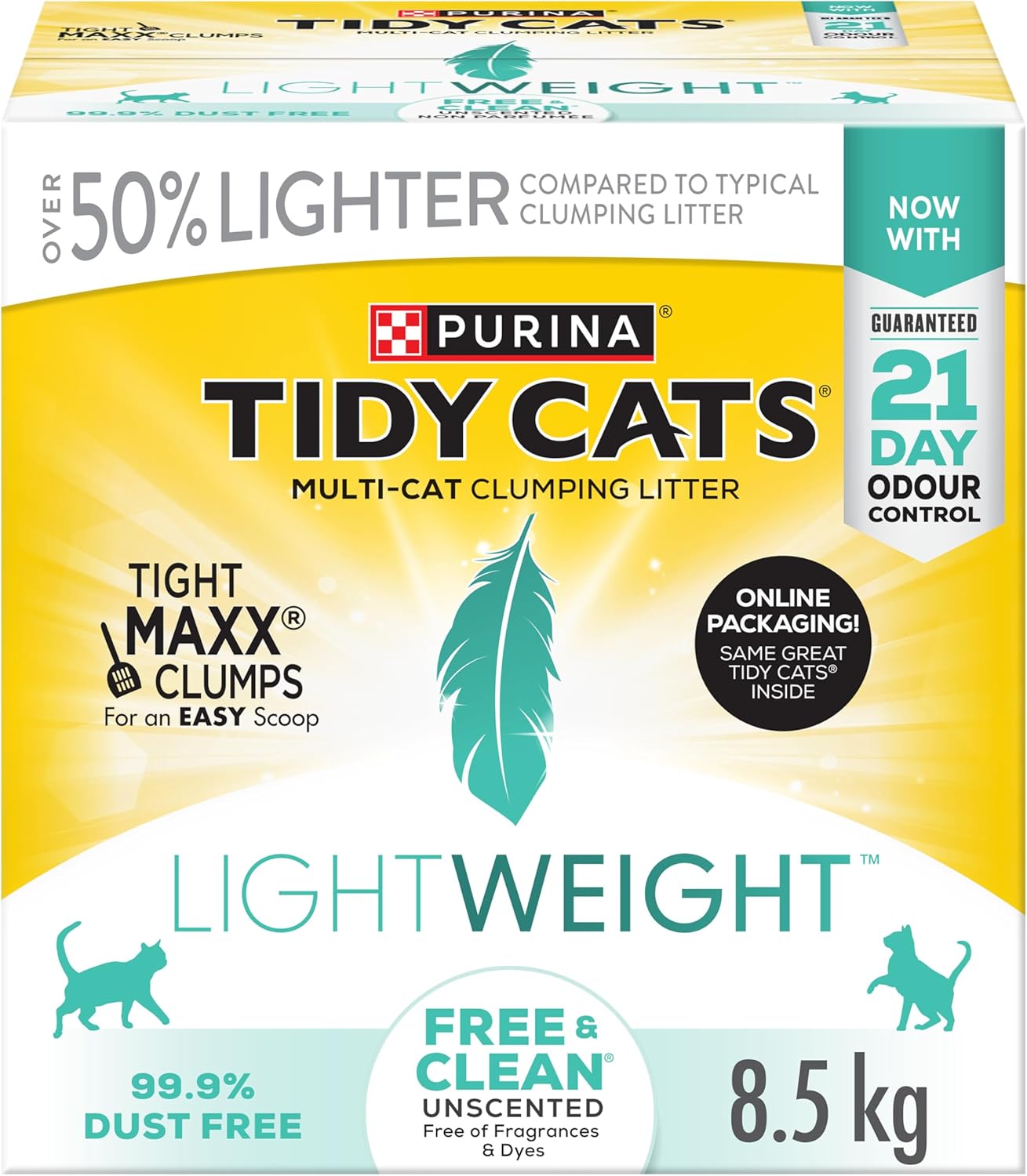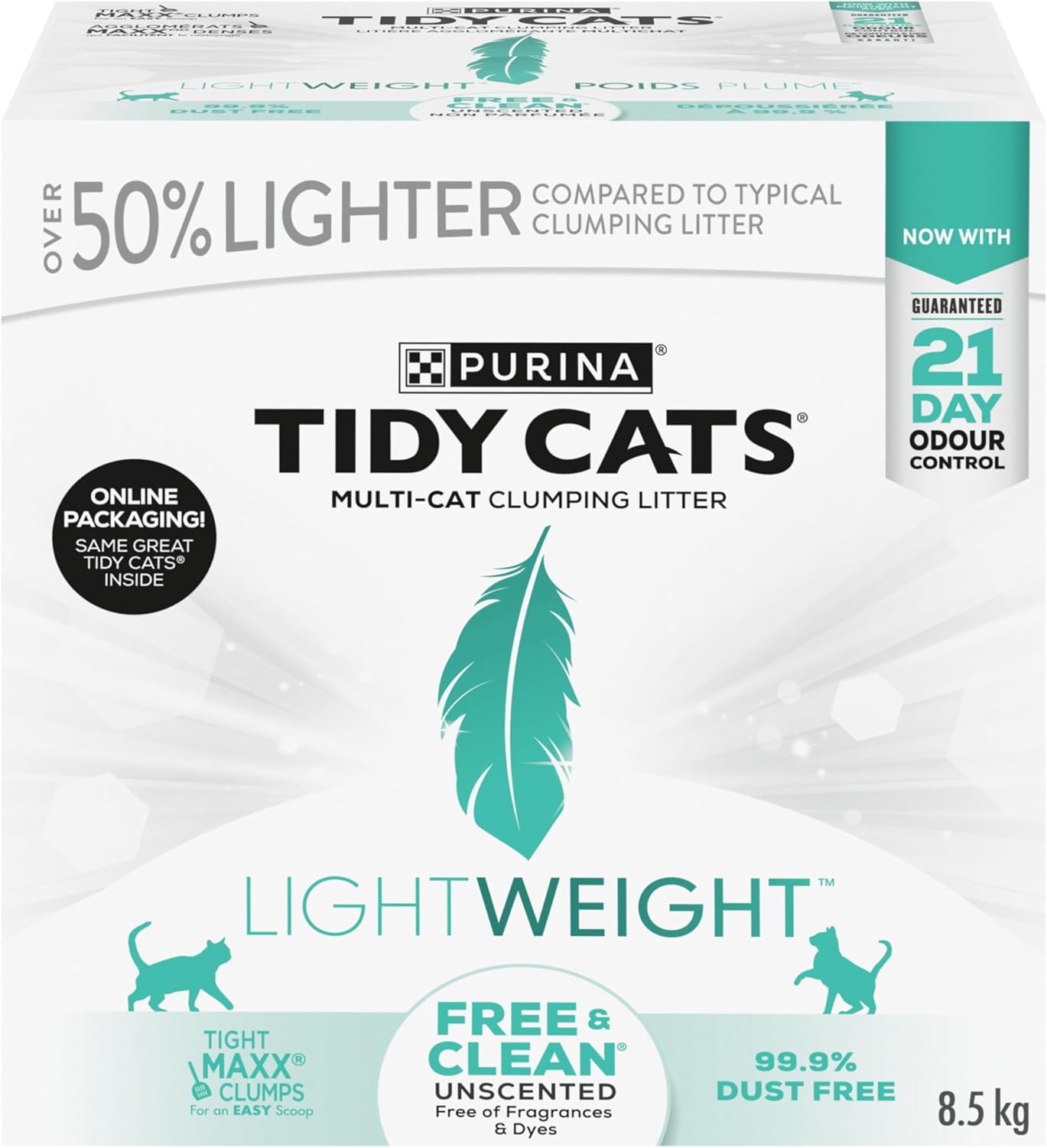 Tidy Cats Cat Litter, Lightweight Free & Clean Unscented Multi-Cat – 8.5 kg Box (1 Pack)
