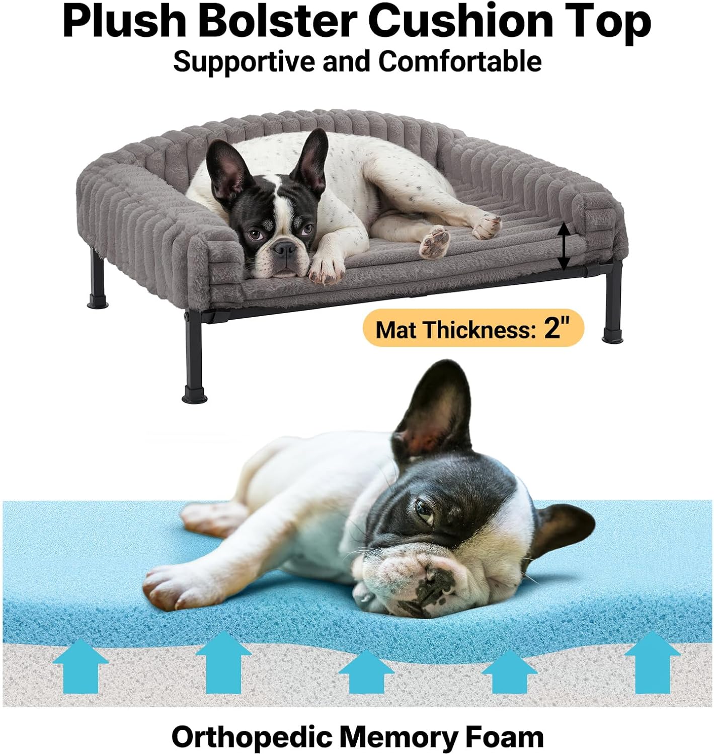 The Veehoo Orthopedic Elevated Dog Bed is designed for small dogs and cats, providing a comfortable and supportive resting place. Its fluffy plush bolster cushion offers added comfort, making it a cozy spot for your pet to relax. The bed features a raised design that helps keep pets cool and off the ground, which is ideal for both indoor and patio use. The non-slip feet ensure stability, preventing any accidental slips while your pet enjoys their nap.