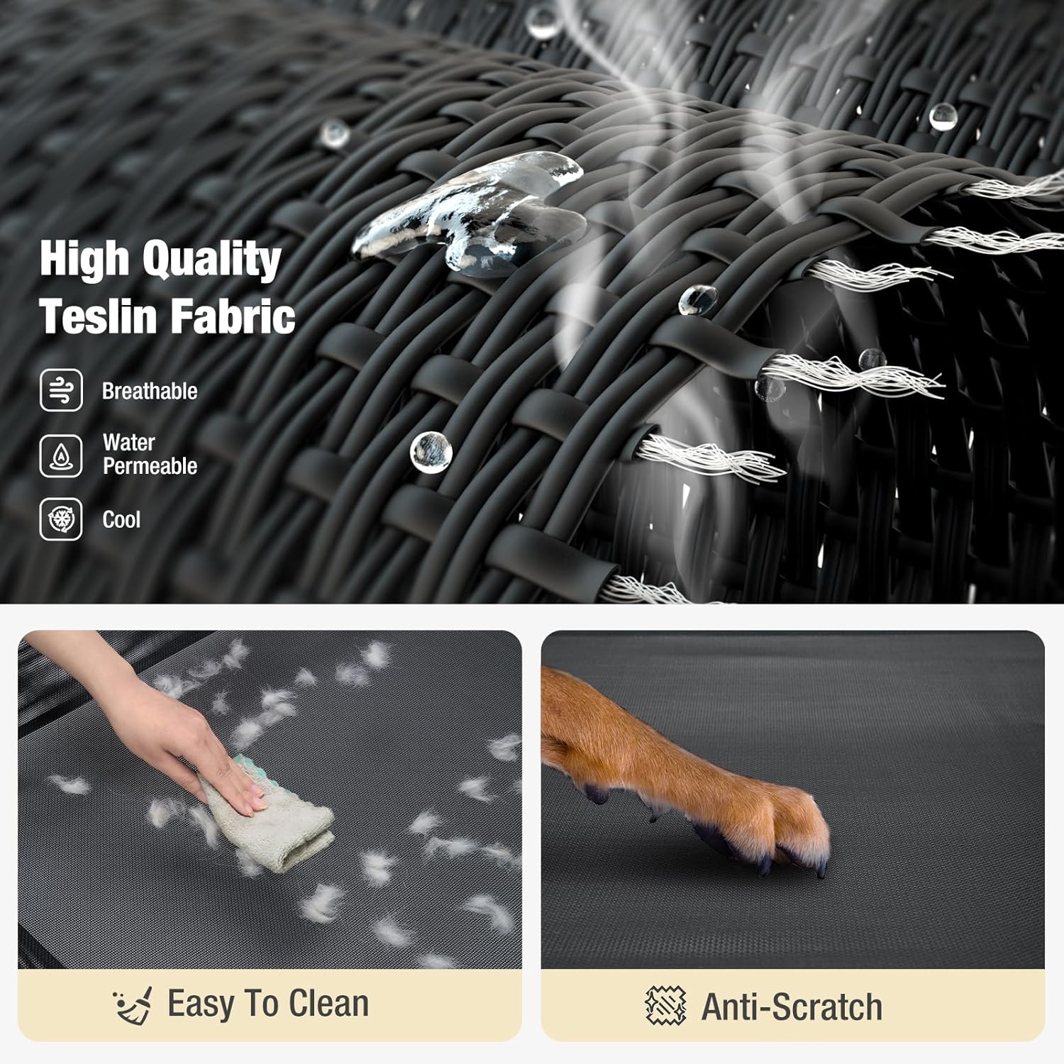 Veehoo Raised Dog Bed XL, Elevated Pet Cot with Guardrail & Slope Headrest, Durable Breathable Teslin Mesh Dog Cot, Washable Pet Bed with Non-Slip Feet for Indoor & Outdoor, 120×81cm, Black