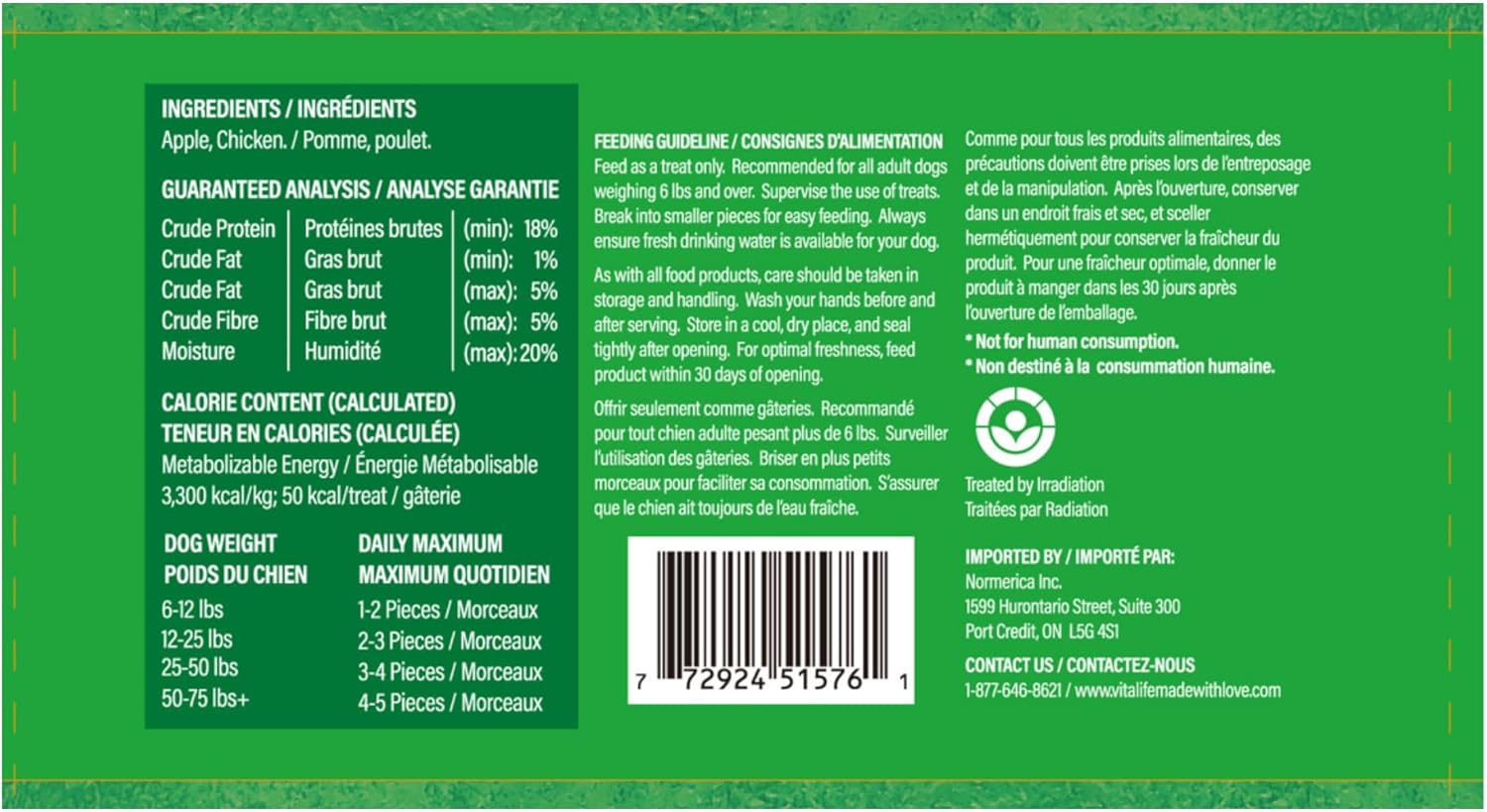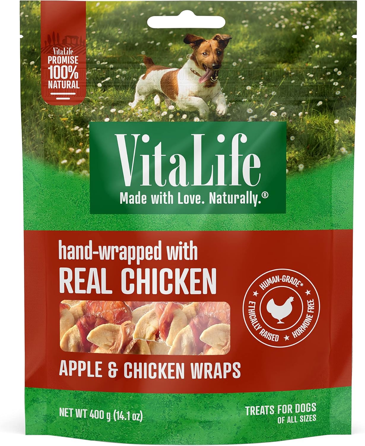 VitaLife Apple & Chicken Wraps | Natural 2-Ingredients | Jerky Dog Treats | Protein, Gluten Free & Good Source of Fibre | 400 g