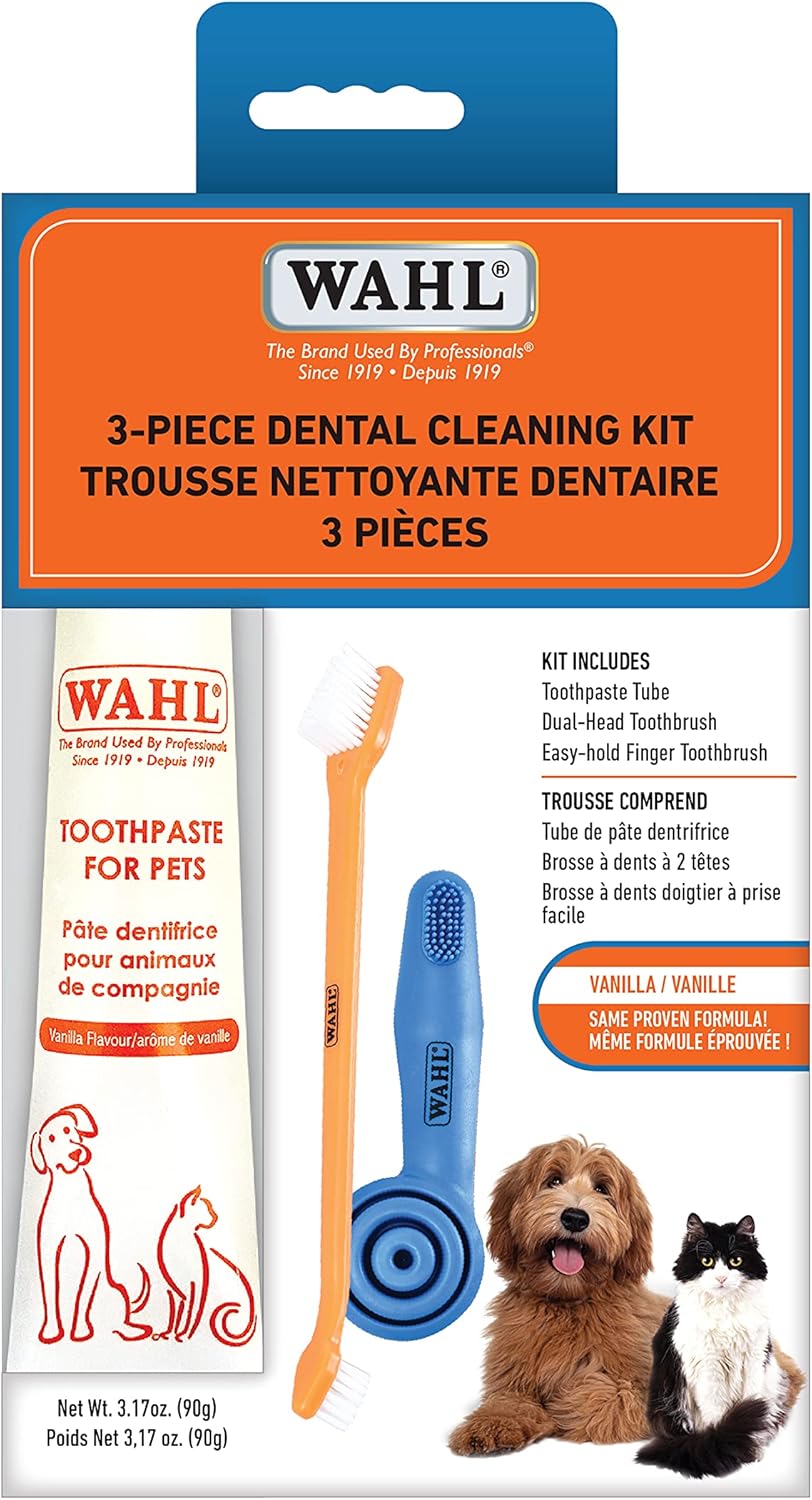 Wahl Canada 3-Piece Dental Cleaning Kit, Dog Dental Teeth Care, Easy Teeth Brushing, Fast Teeth Brushing, Toothbrush for Dogs – Model 59854
