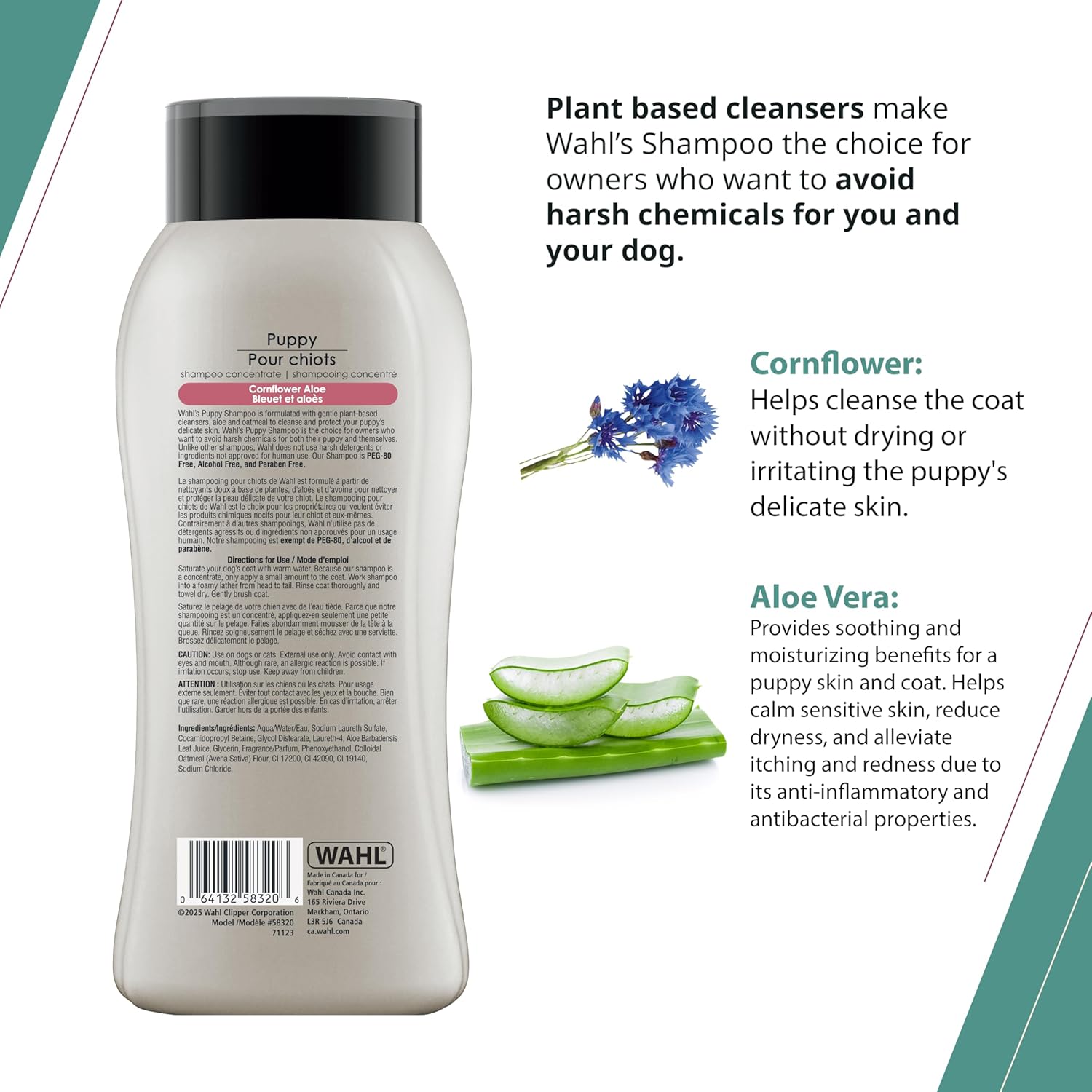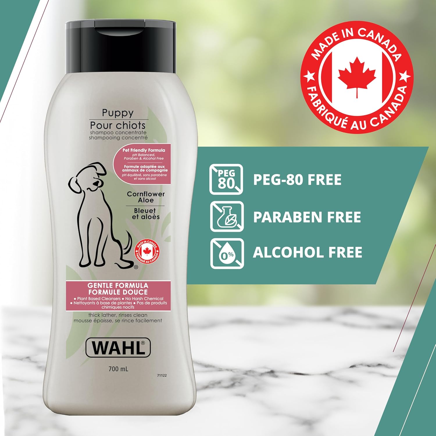 Wahl Canada Puppy Shampoo, Plant Derived Shampoo in Cornflower Aloe to Gently Cleanse and Protect Your Puppy’s Delicate Skin, Paraben-Free, 700ml, Model 58320