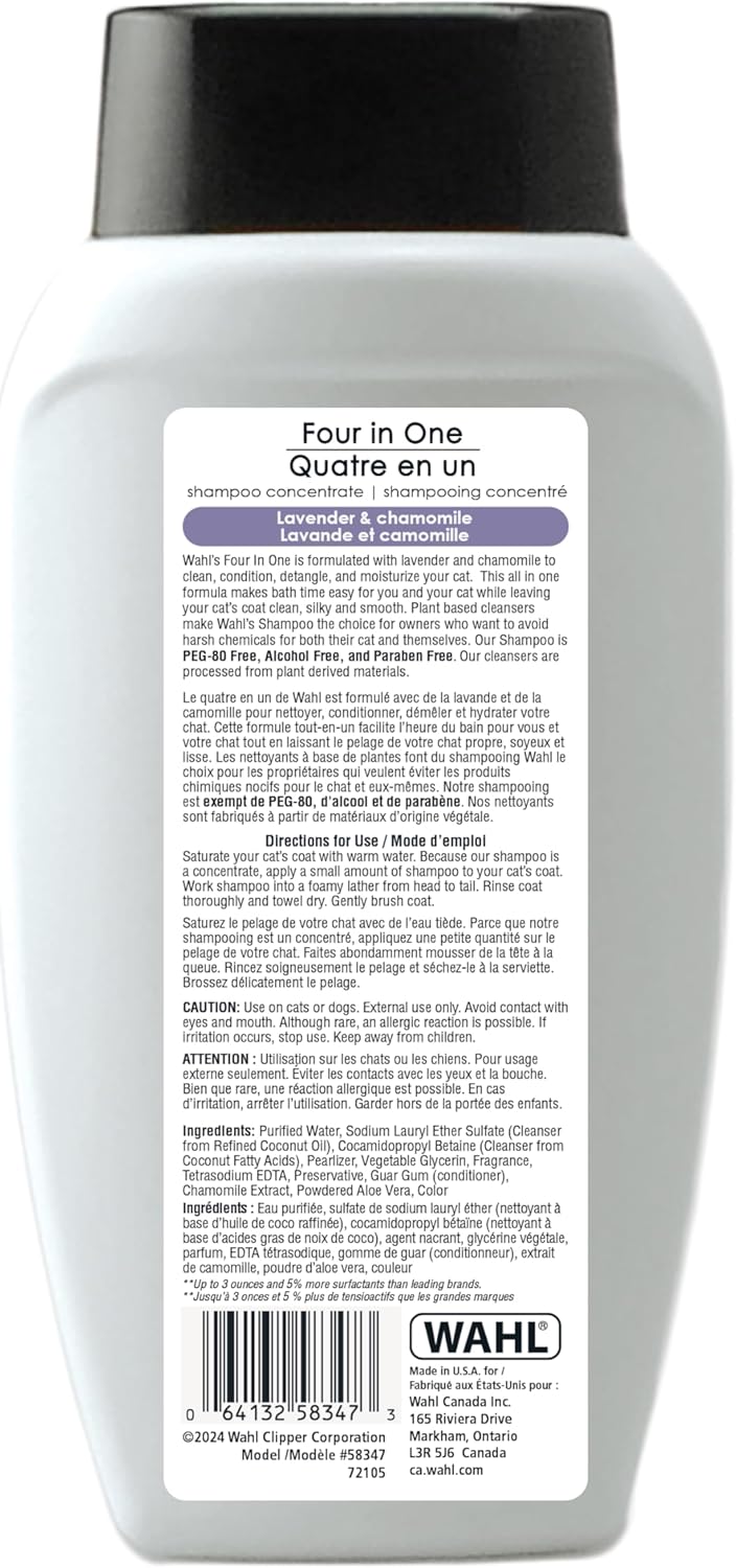 Wahl Four in One Cat Shampoo & Conditioner Concentrate – 455 ml – Model 58347, Cleans & Conditions