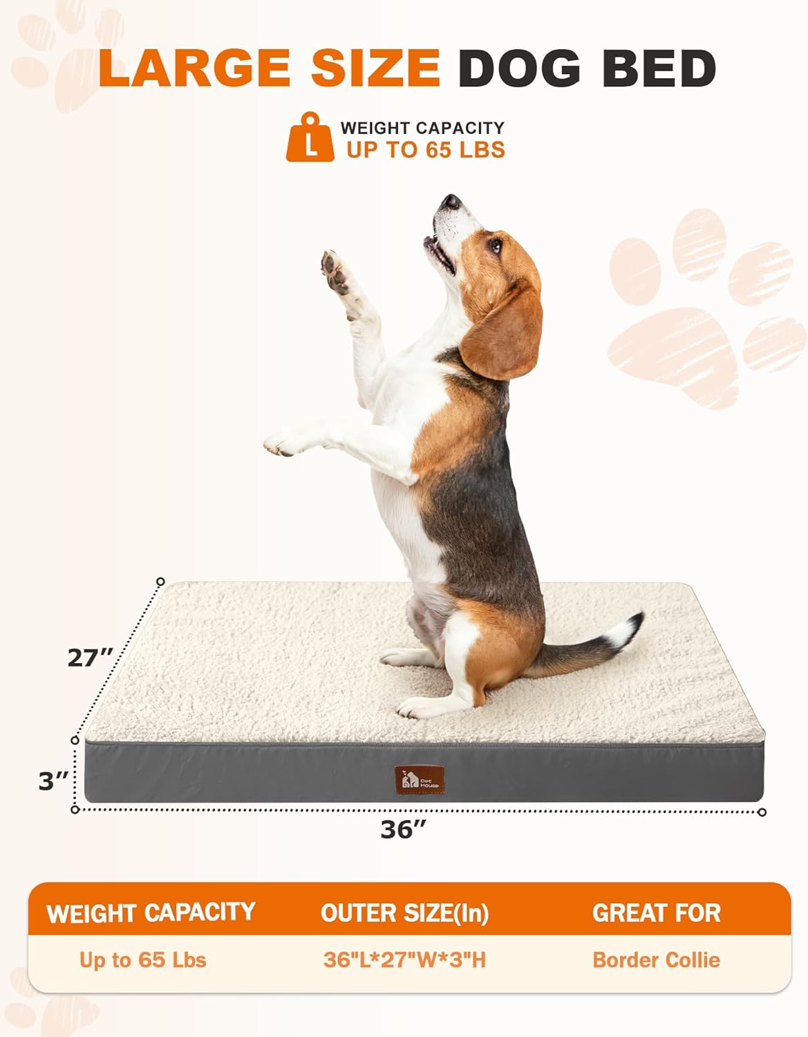 Waterproof Dog Bed Large-Orthopedic Support & Egg Crate Foam Dogs Mat, Soft & Cozy Dog Crate Pad with Non-Slip Bottom and Machine Washable Cover, Large Pet Mat Beige