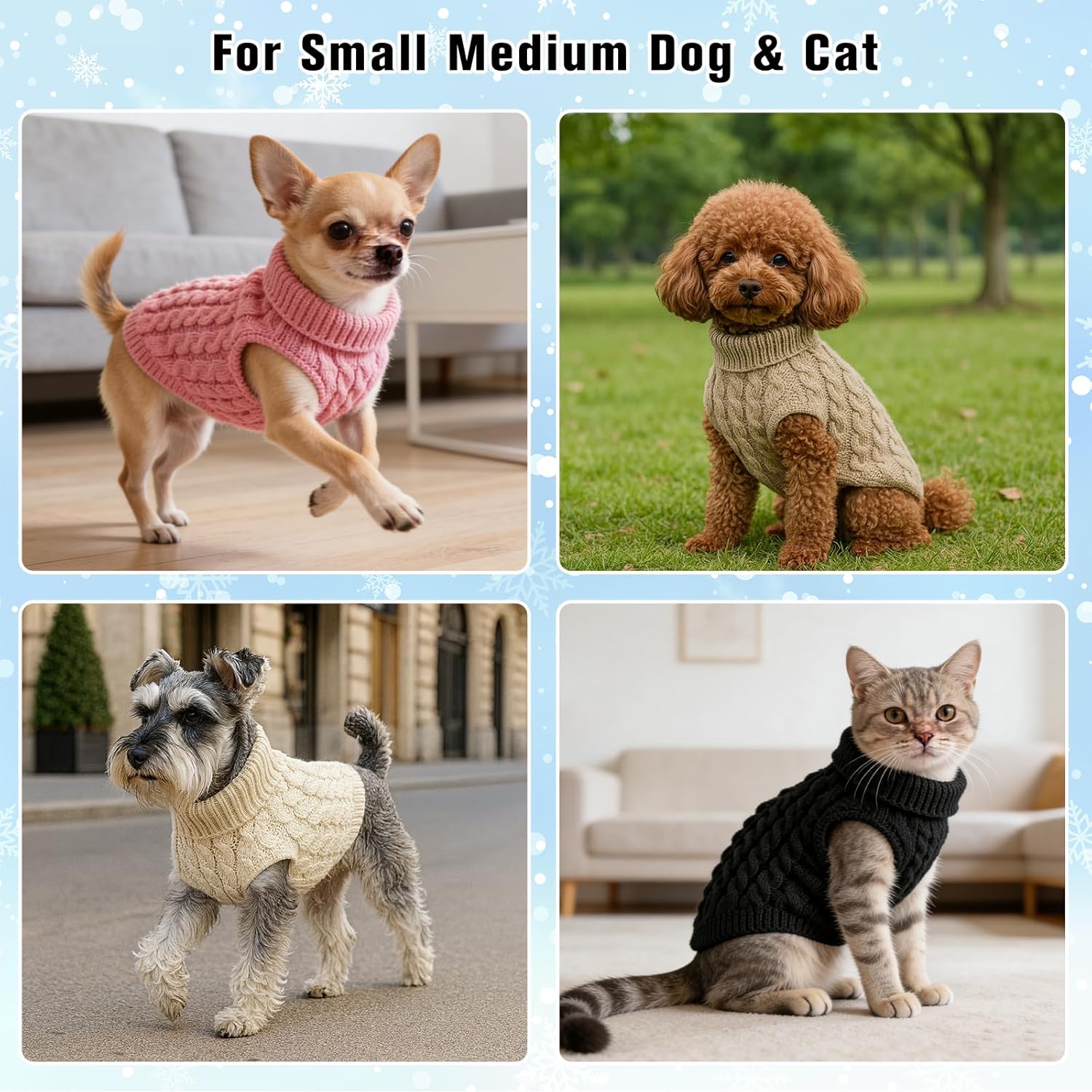Winmany Pet Dog Turtleneck Knitting Sweater Coat Winter Warmer Thickening Pullover Knitwear Crochet Coat Clothes for Small Medium Dog Cat