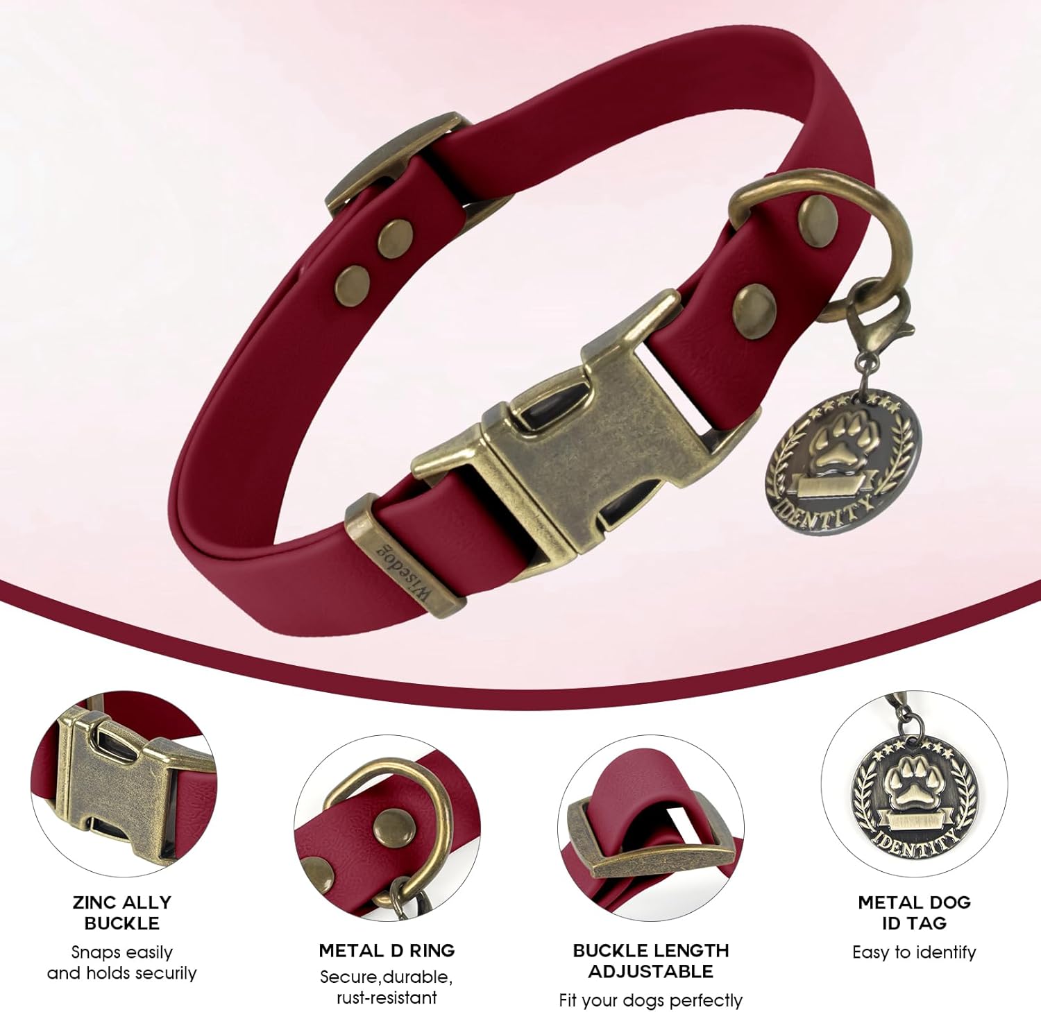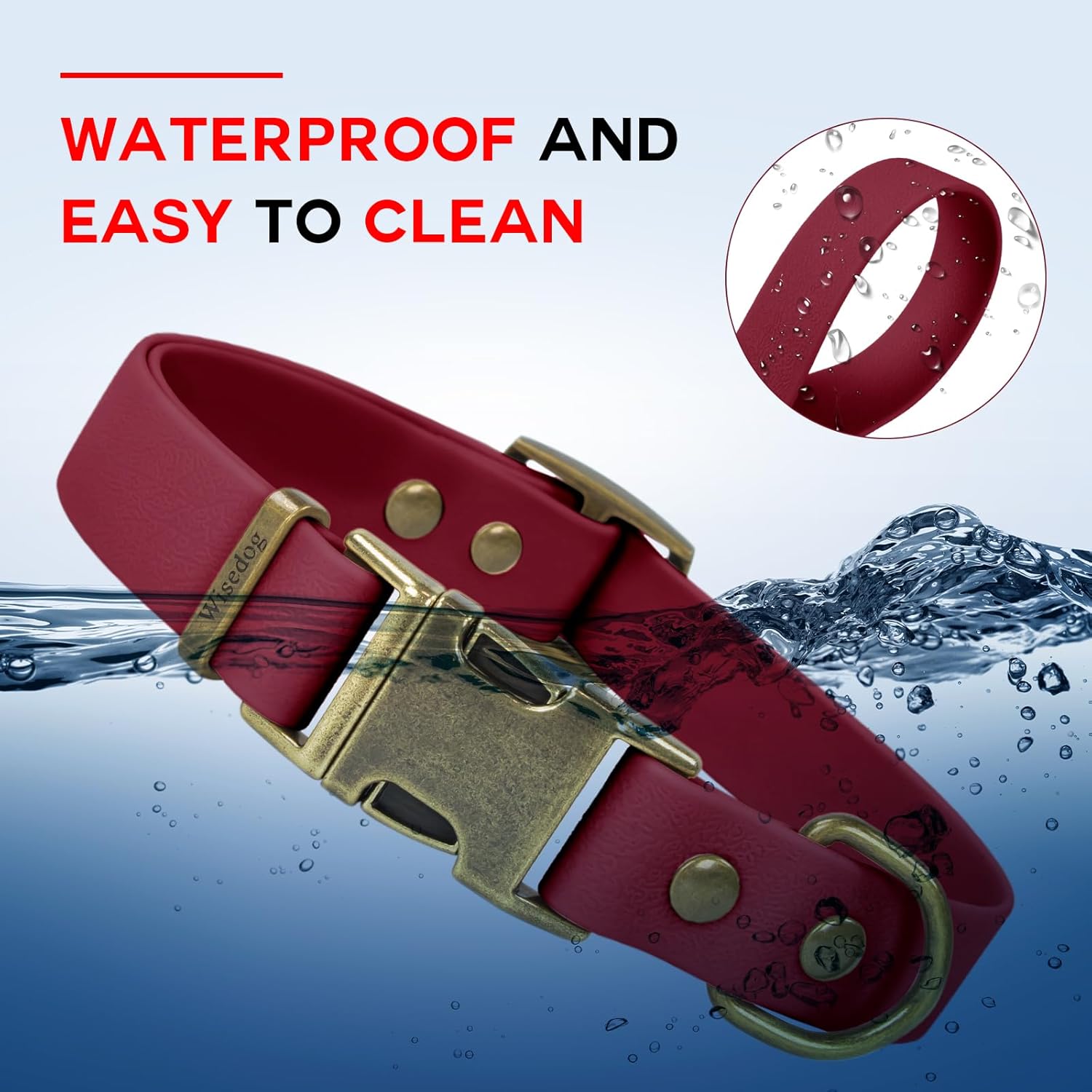Wisedog Rubber Dog Collar for Medium Dogs – Waterproof Dog Collar with Quick Release Metal Buckle Easy to Clean Puppy Collar for Outdoor Use, Burgundy(M:12″-18″)
