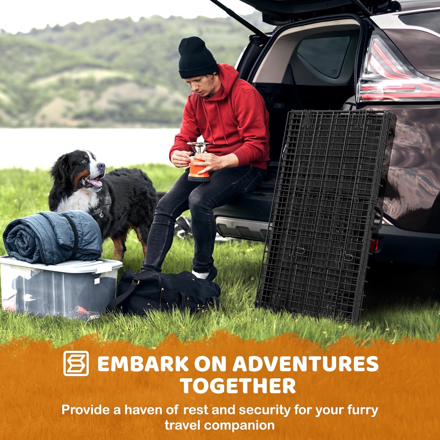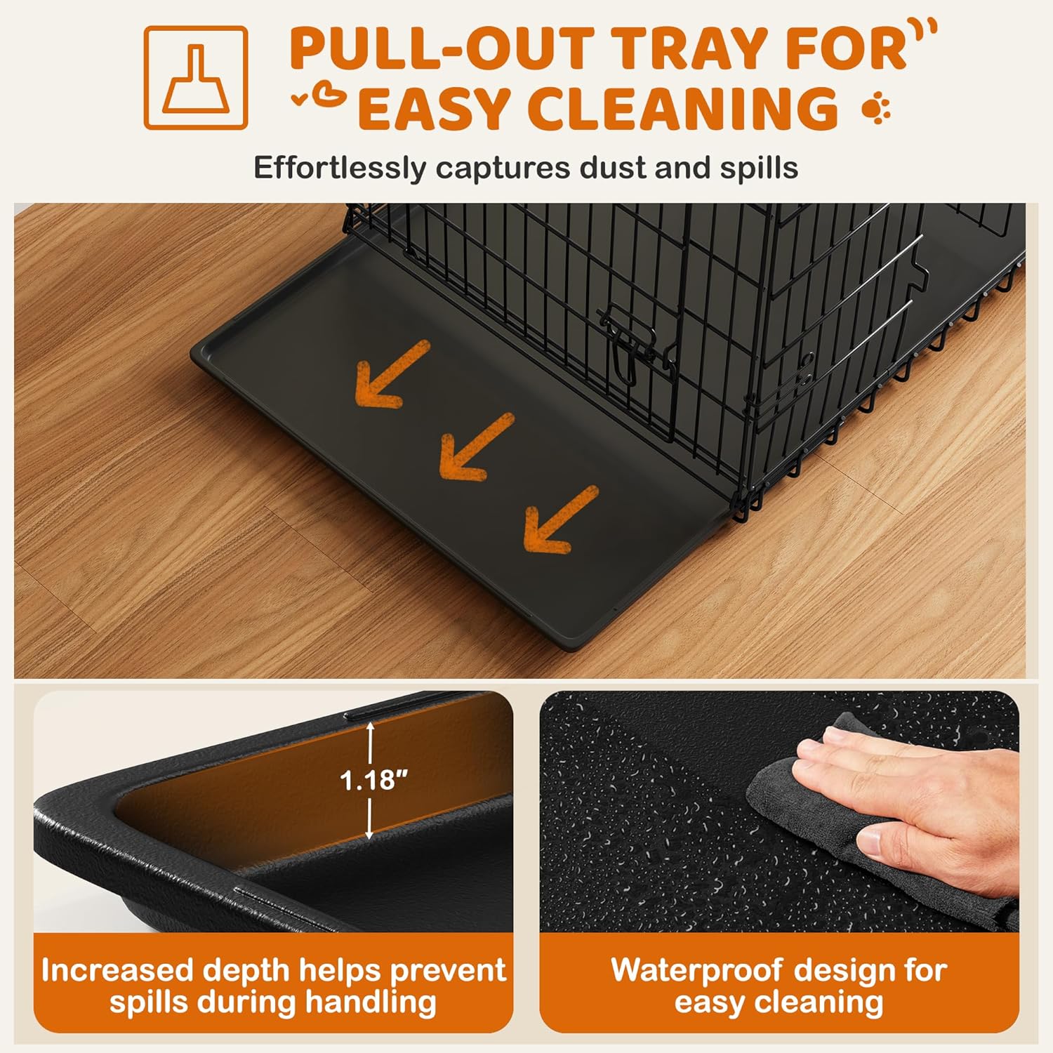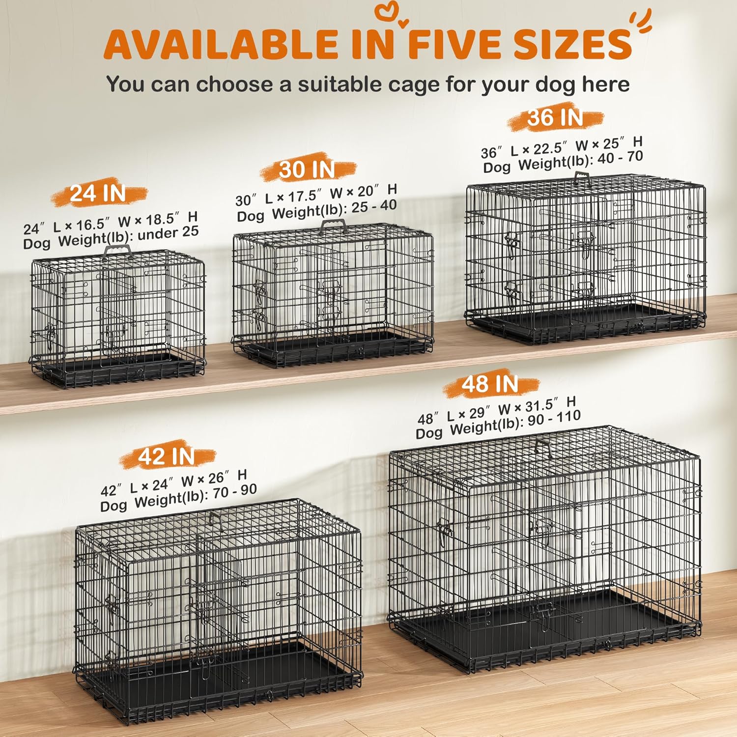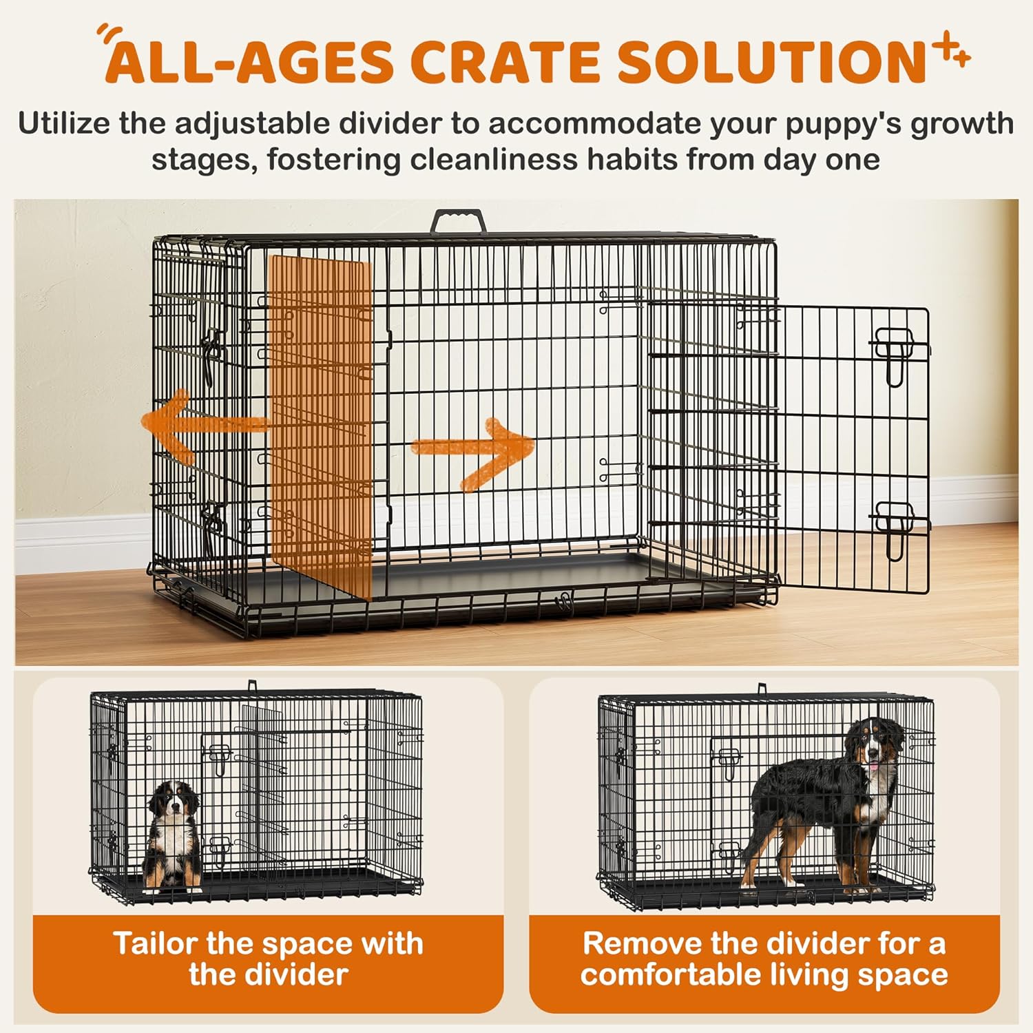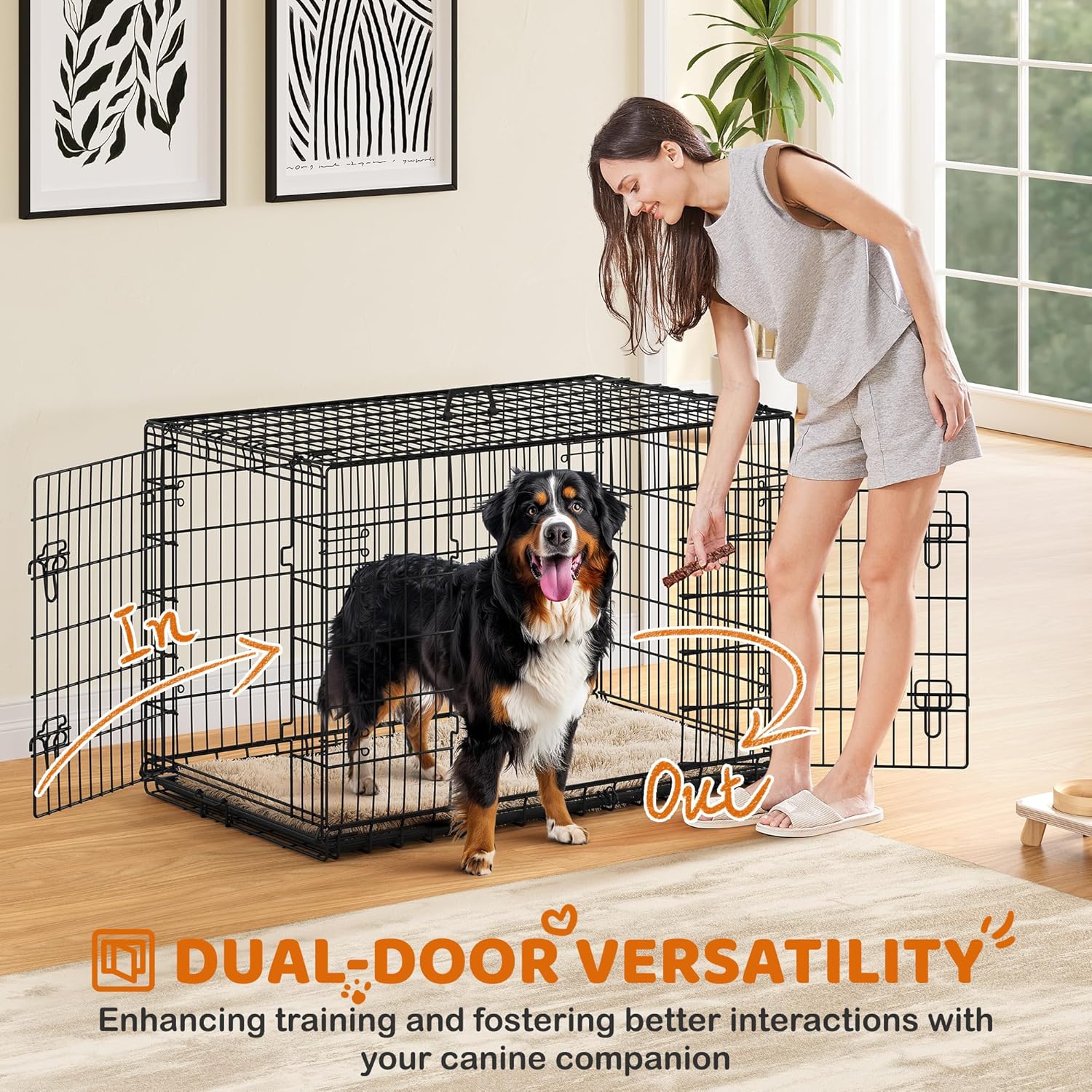 Yaheetech Dog Crate 48” Double Door Dog Crate w/Divider for Puppy to Adult Large Collapsible Metal cage with Removable Tray XXL Wire Dog Kennel Crate for Dogs Large Travel Cage, Black