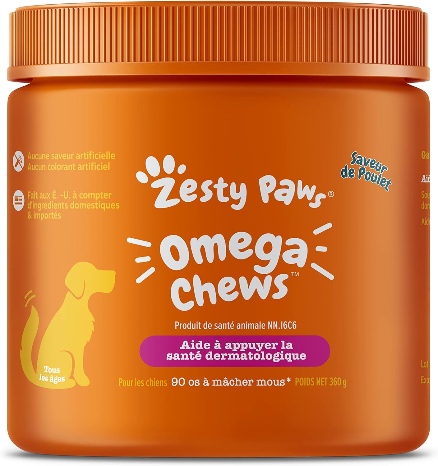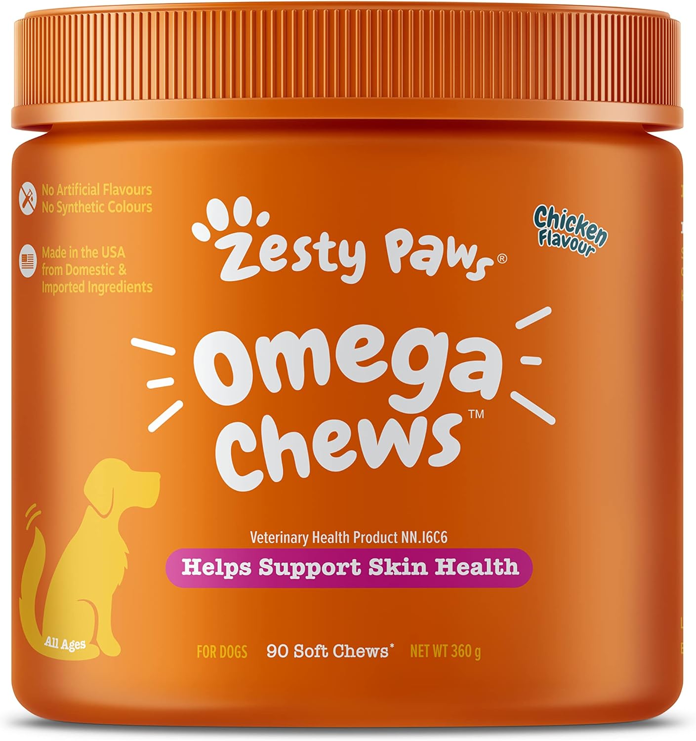 Zesty Paws Omega 3 for Dogs Soft Chews – Fish Oil for Dogs with Omega 3 for Skin Health – Skin & Coat Supplement with Vitamin E & Vitamin C Antioxidants -Chicken Flavour – 90 Count